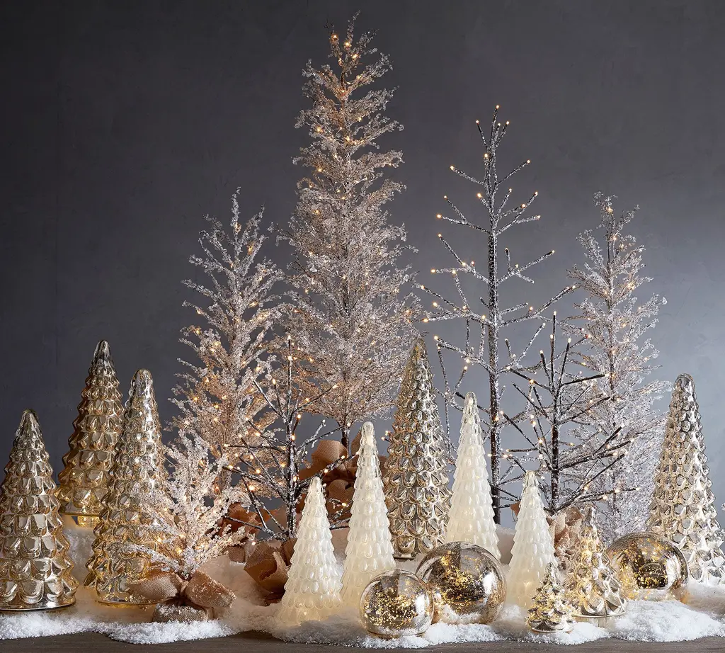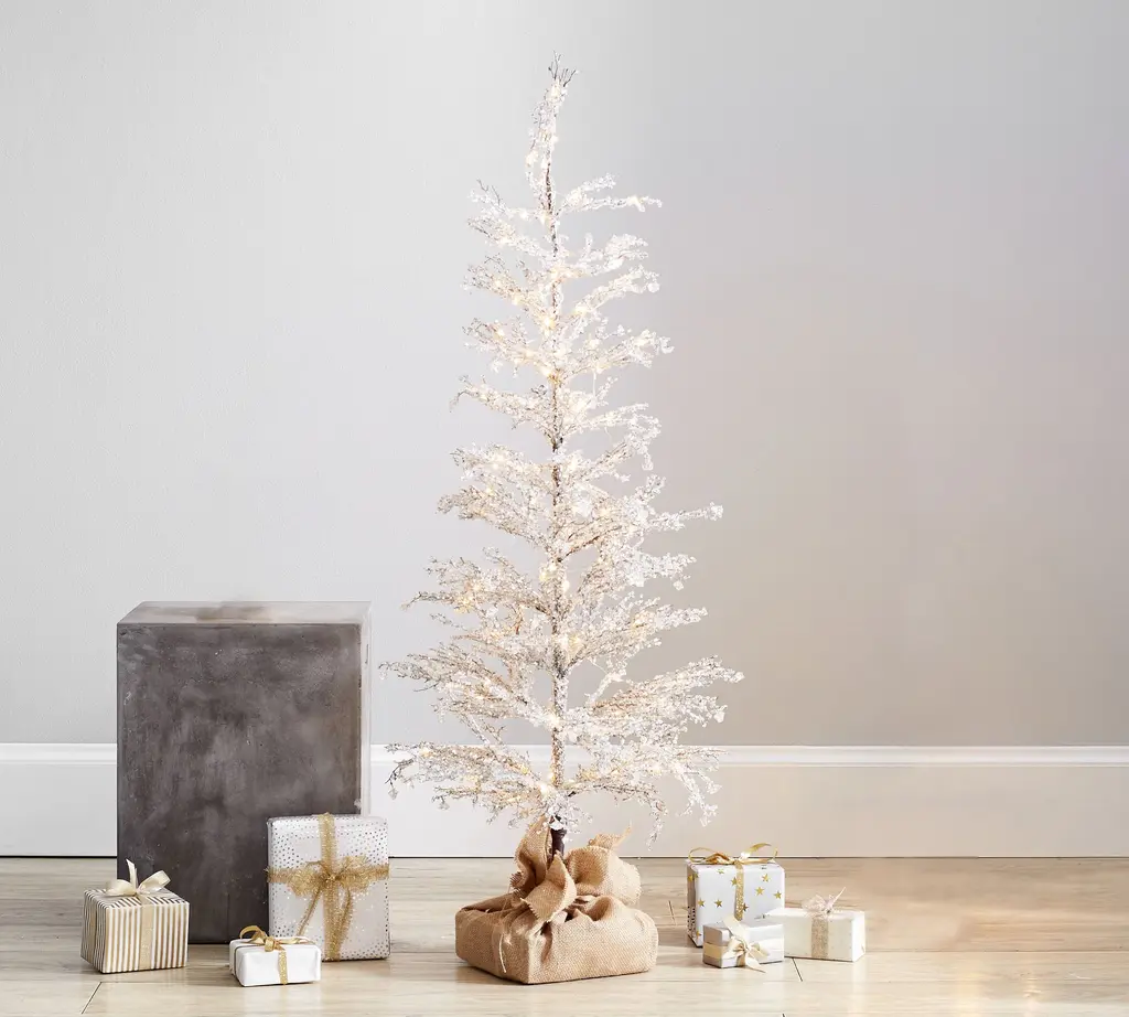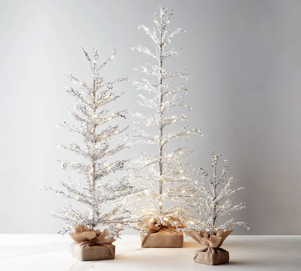 With a slim profile and the look of frost, our pre-lit crystal trees are a simply magical way to decorate for the season. Add them in an entryway or living room for a festive welcome. We even love to replace an everyday table lamp with one.