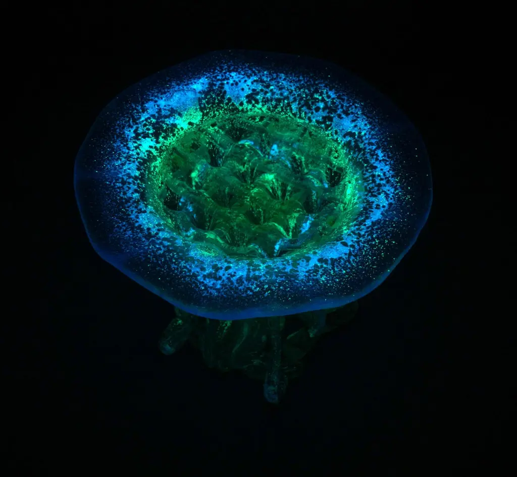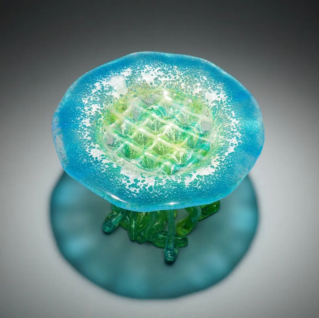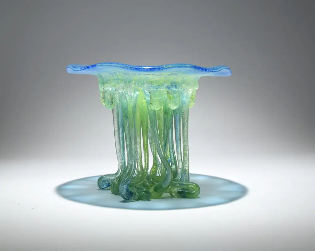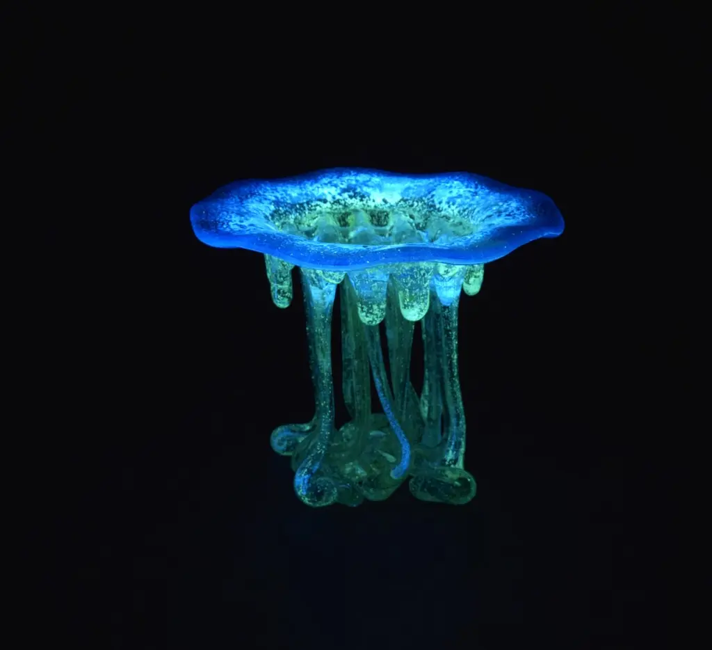 "Little Green" Fluo Murano Glass Jellyfish, Venice, Handmade In Italy, 2025