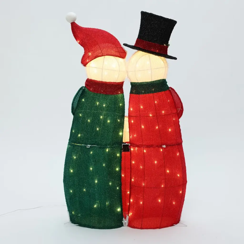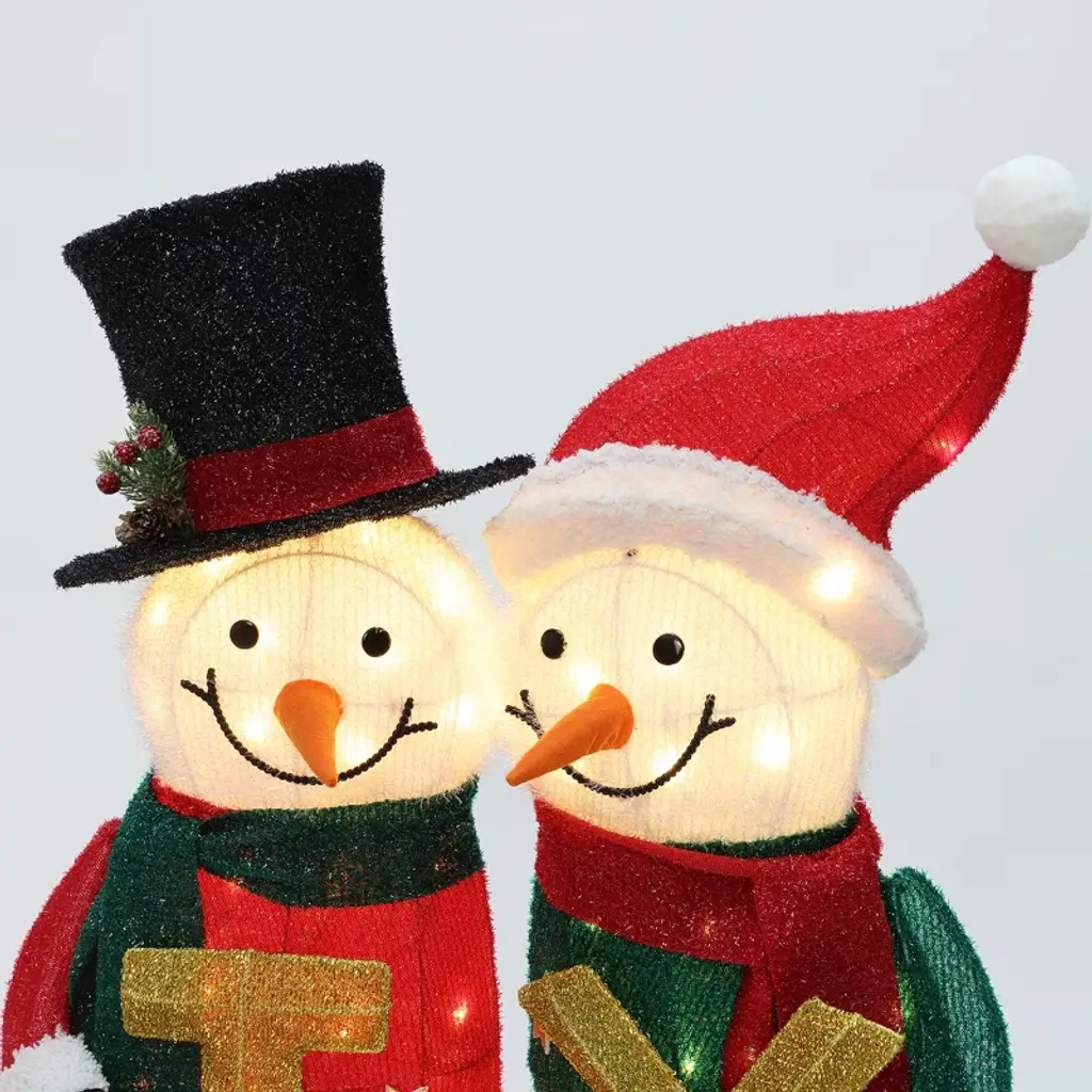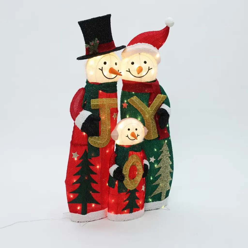 Embrace the spirit of the season with this charming 39.4-inch Snowman Family JOY decoration! This delightful trio features Papa donned in a classic top hat, Mama sporting a festive Santa hat, and their playful little snowman, all dressed in vibrant red-and-green outfits that exude holiday cheer. Accented with glowing "JOY" that radiates warmth, this enchanting display is beautifully illuminated by 130 warm white LED lights, setting the perfect atmosphere for your living room, porch, or garden. Create magical moments ideal for family photos, cozy evenings, or warmly welcoming guests. Designed for both indoor and outdoor use, this durable decoration adds a whimsical touch to your festive celebrations.