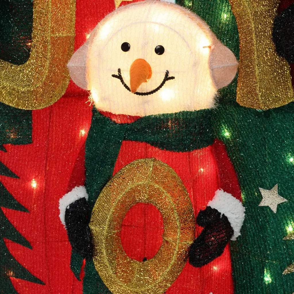 Luxenhome Snowman Family With Joy Greeting Holiday Decoration With Lights For Indoor And Outdoor Red, Green, White, Black