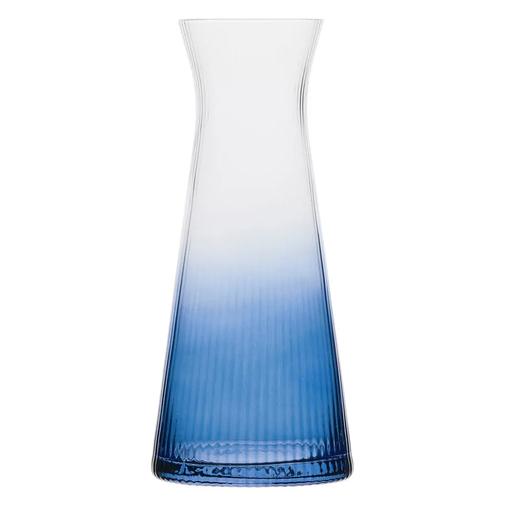 Ethereal flair and geometric references harmoniously coexist in this stunning decorative bottle. Fashioned of precious mouth-blown glass in a relaxing Air-Force blue hue, it is marked by a conical silhouette culminating in a long and slightly flared neck. The entire artisan crafting process implies the absolute uniqueness of every single piece from the Morandi Collection.