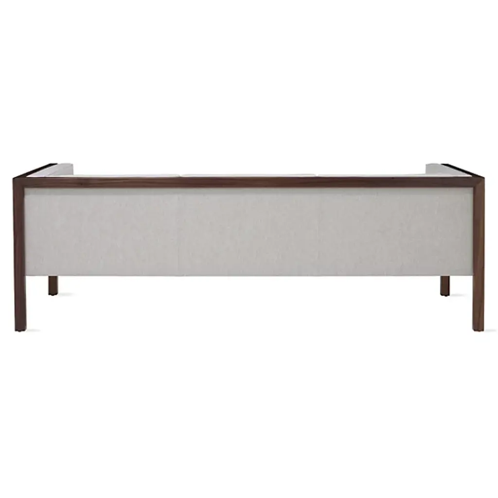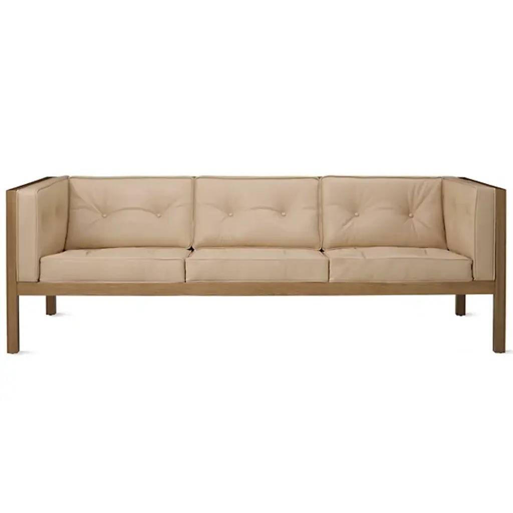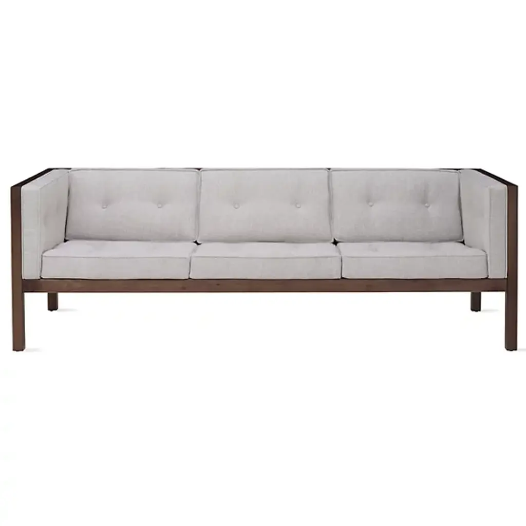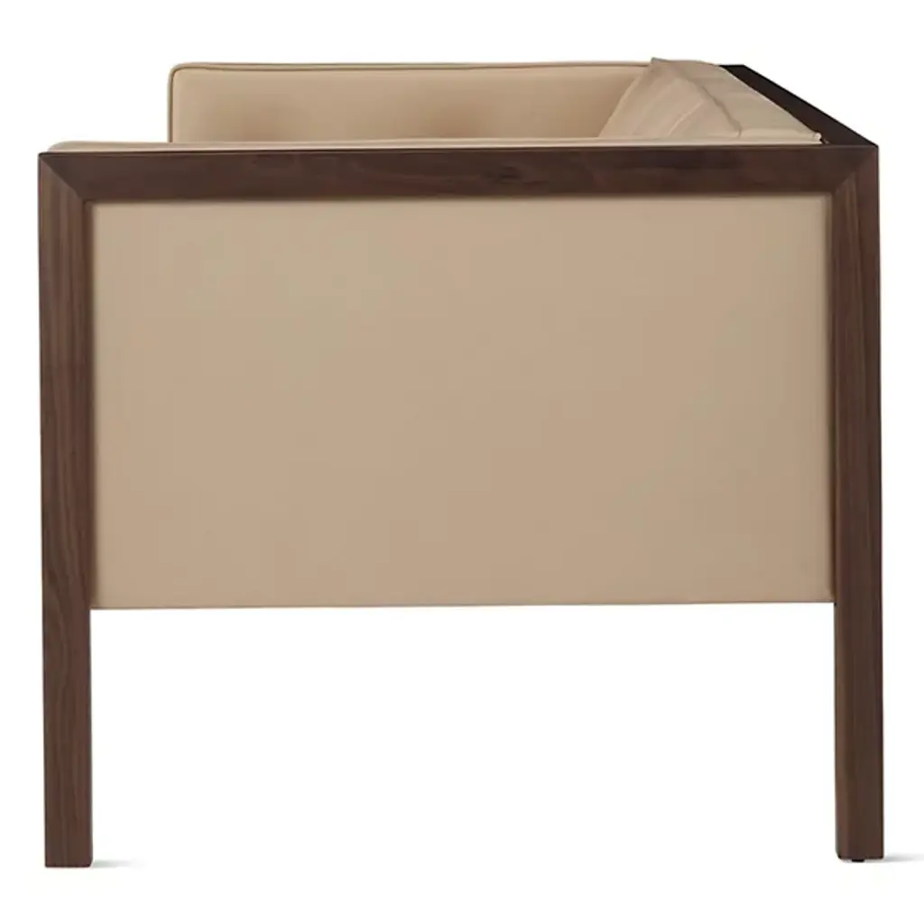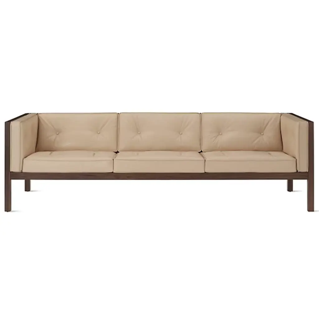 Celebrate mid-century modern craftsmanship with the Nelson Cube Sofa by Herman Miller. This decorative furnishment lives up to its name, boasting a right-angle motif throughout its meticulous construction. A frame of fine wood is lined with an intricate, tufted cushion which gives this piece a retro sensibility. Expert designer, George Nelson, believed in being environmentally conscious. His sofa is fashioned accordingly, taking on a minimalistic style that is elegant while forgoing excessiveness. Strong legs support a trinity of cushions so that you can sit in a relaxed position. This stately work of art is upholstered in various styles so that you can choose the sofa that most aligns with your home décor.