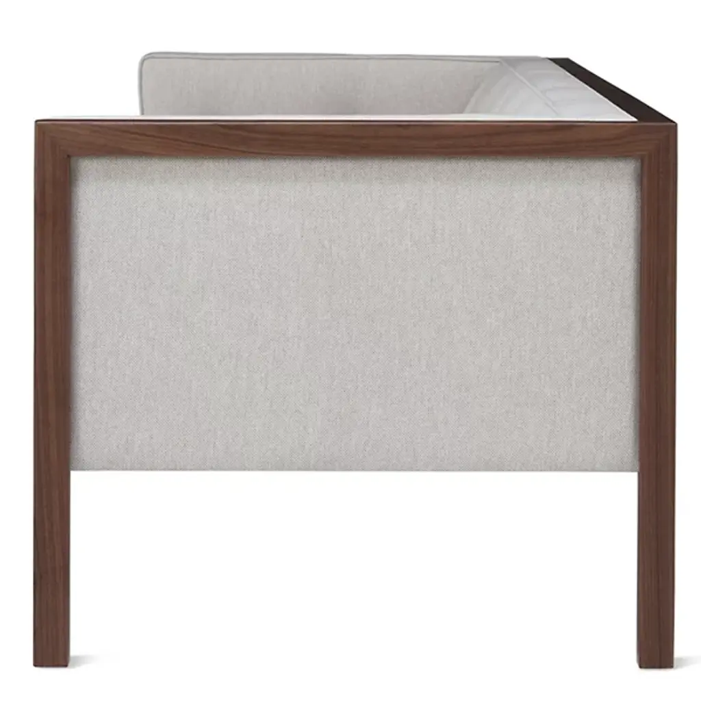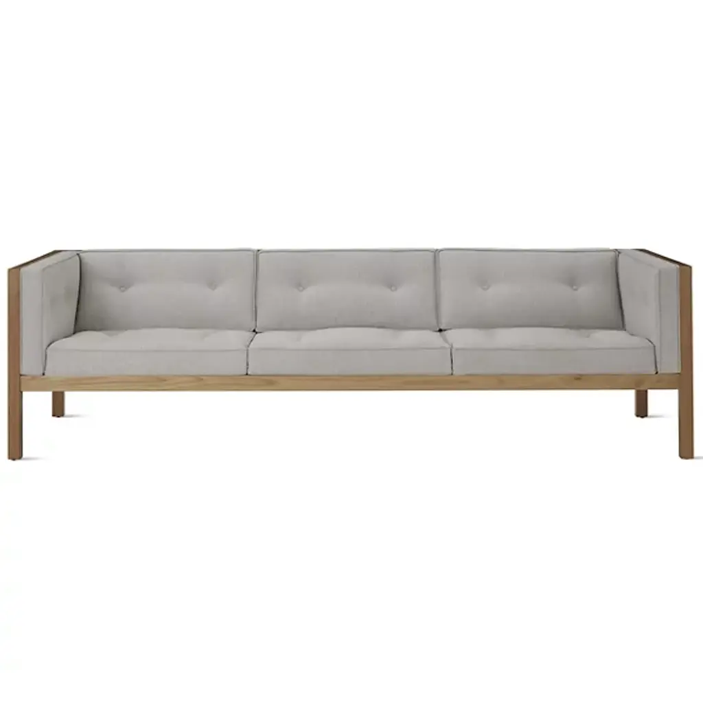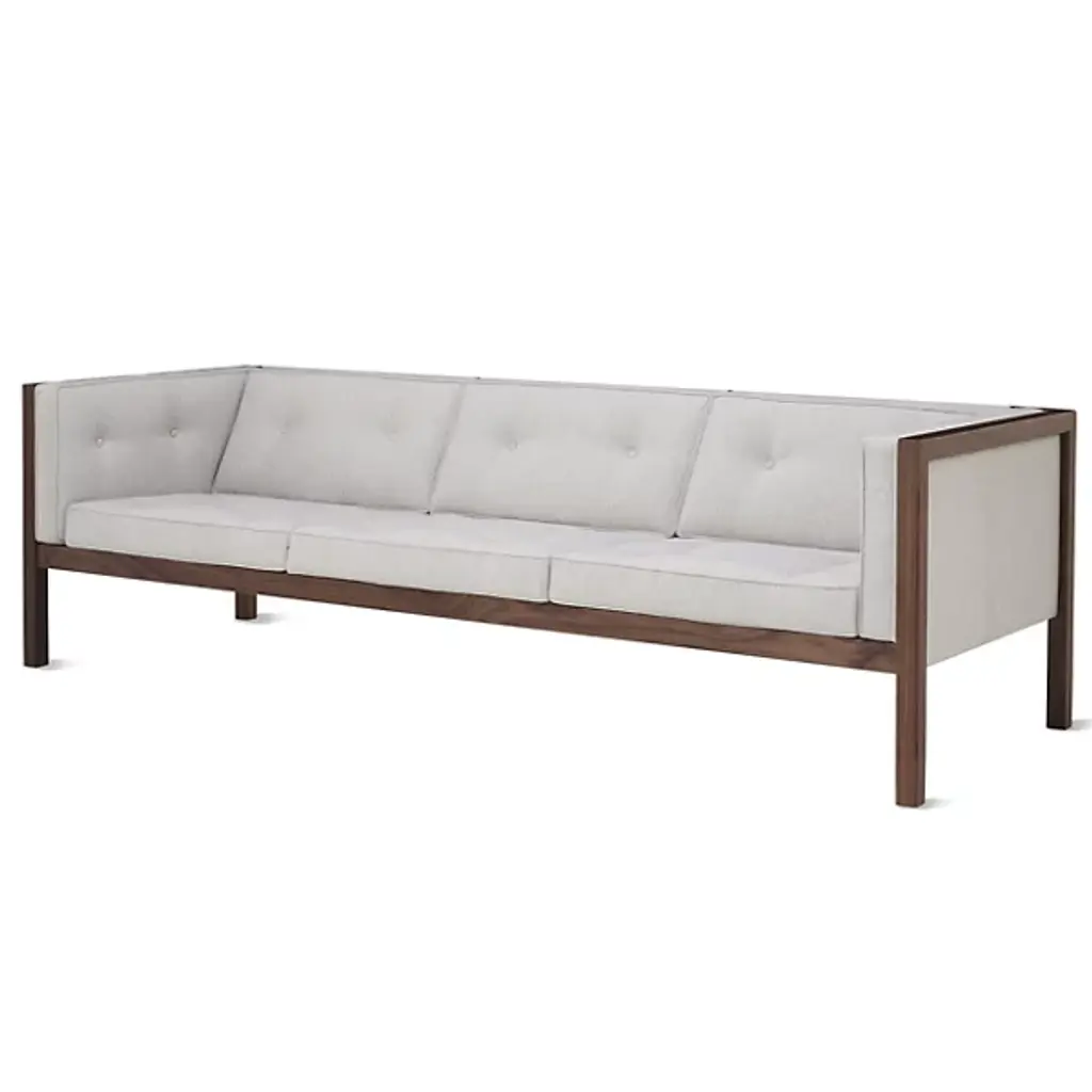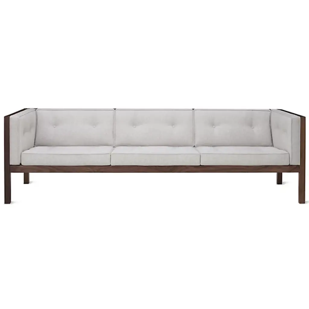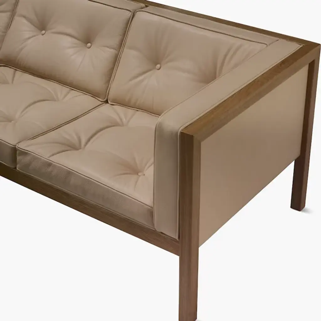 Celebrate mid-century modern craftsmanship with the Nelson Cube Sofa by Herman Miller. This decorative furnishment lives up to its name, boasting a right-angle motif throughout its meticulous construction. A frame of fine wood is lined with an intricate, tufted cushion which gives this piece a retro sensibility. Expert designer, George Nelson, believed in being environmentally conscious. His sofa is fashioned accordingly, taking on a minimalistic style that is elegant while forgoing excessiveness. Strong legs support a trinity of cushions so that you can sit in a relaxed position. This stately work of art is upholstered in various styles so that you can choose the sofa that most aligns with your home décor.