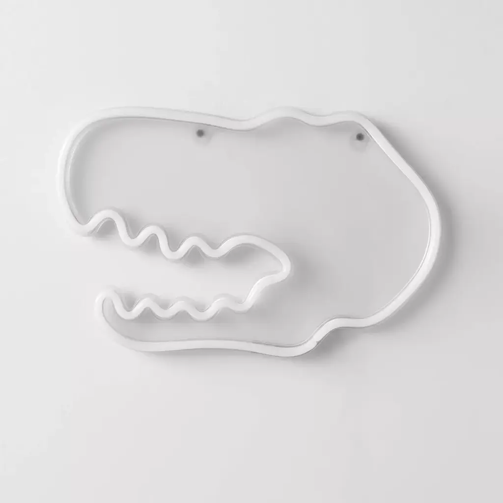 If your kiddo's room is decked out with prehistoric style, then this Neon Dinosaur Light from Pillowfort™ is perfect. Made with a long lasting and durable LED light, this neon wall light is shaped like T. rex's head with a bright green color for a fun look. Simply hang this LED T. rex light by an outlet and plug it in to give your child's room a touch of fun style that they're sure to love.