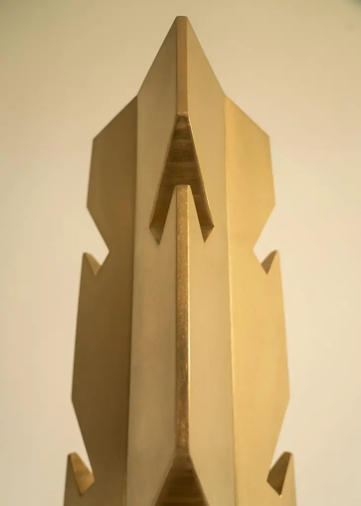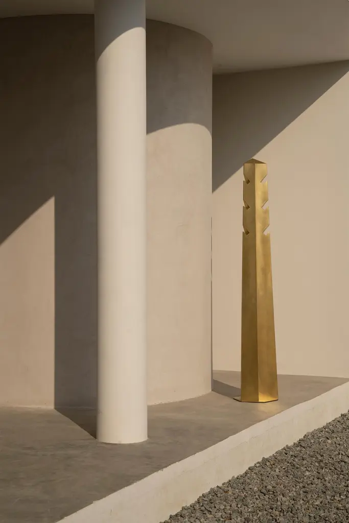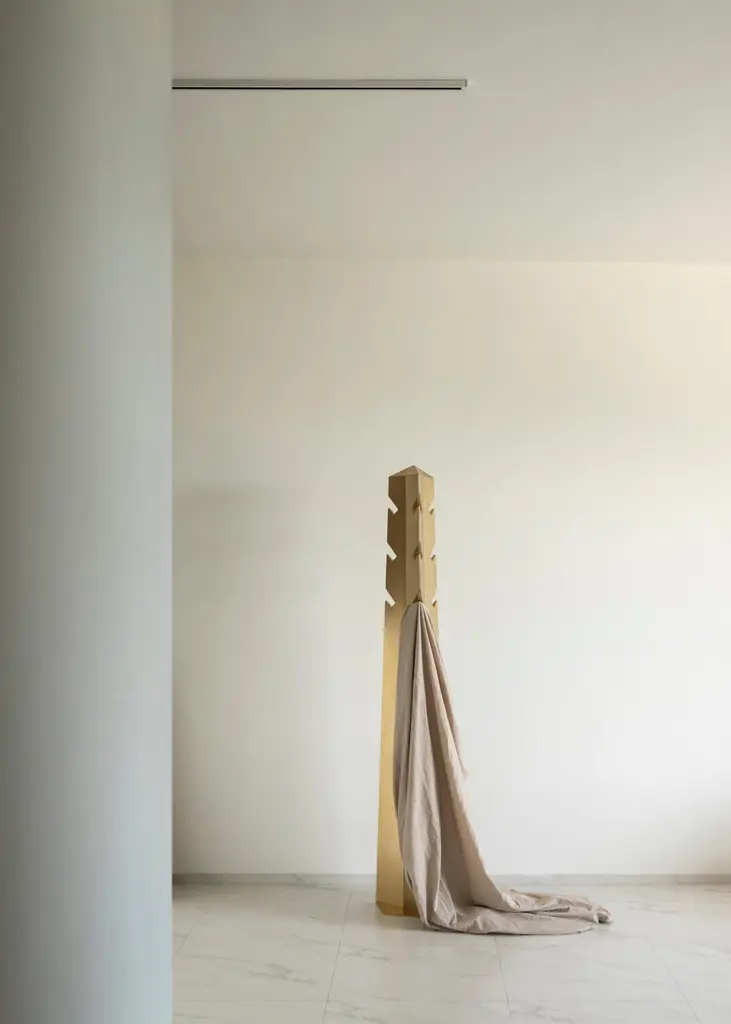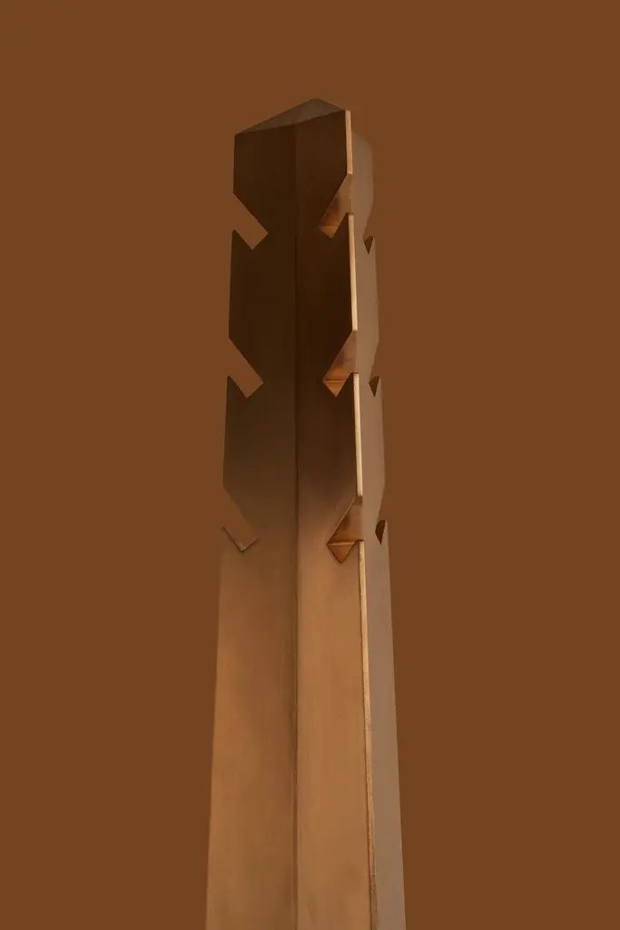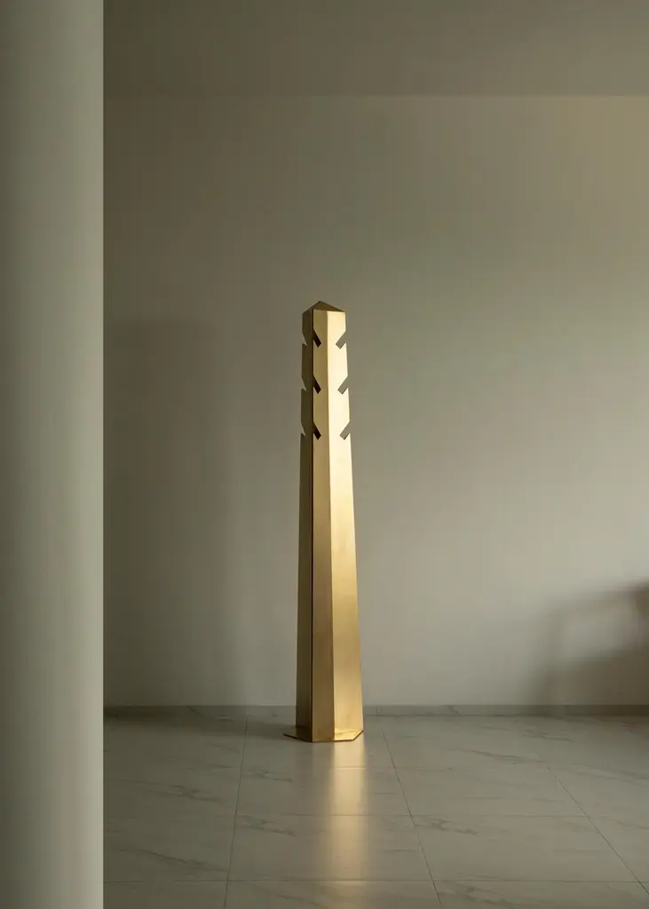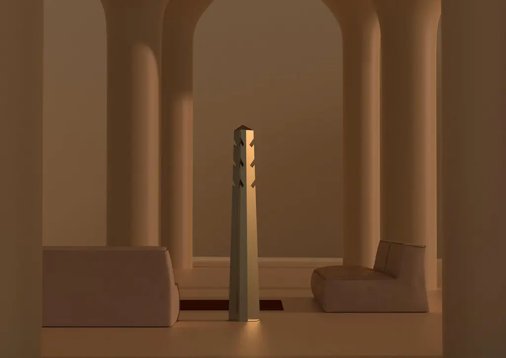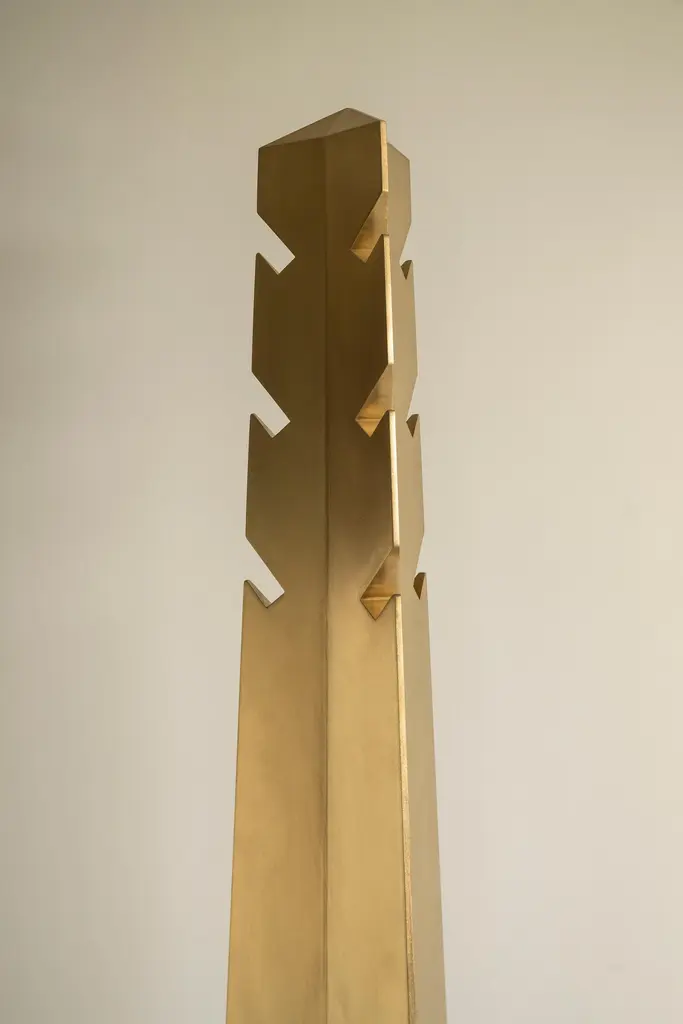 Obelisk 01 clothing stand by Sing Chan Dimensions: D 36 x H 190 cmMaterials: Stainless steel, electroplating.Greek civilization and art were greatly influenced by ancient Egyptian culture, which radiated throughout the European continent. It can be said that ancient Egypt is the origin of the Field of Greek art, affecting the whole west. Try to skip the current trends and look for design clues from ancient origins.Inspired by nature, the ancient Egyptians imitated the columns of palm trees and were the forerunners of the Greek Oric columns.The ancient Egyptian civilization is the result of the Nile, the myth of the gods also was born in chaos, flood combination was born out of all the gods, heaven and earth has on behalf of god, most of the image of god is made up of people and animals, very emphasis on natural and human relations, and will work as a god, and pharaoh plays an angel of god, son, the sun, in the name of god to rule people at the same time,In its mythological system, the sun god ra, the huge circle behind the bird head and human body, symbolizes the sun, and this distinctive image is the image source of many religious gods in Modern Times. But it is the archetype of many religions and myths in Western Europe.The obelisk, a huge granite monument carved from the top, was built to worship and worship the sun god Ra. Obelisks and pyramids are topped by a small pyramid, also known in ancient Egyptian as Benben, which is the original mound from which the first gods were conceived.The ancient Benben stone would be plated with gold foil. It was the place where the first sunlight fell. The sun refracts and gives off a dazzling light, which can be seen from several kilometers away, showing the pharaohs 'power and consolidating their authority throughout the dynasty.Sing Chan ( Chinese: ???/Xingyu Chen) , the founder of SINGCHAN DESIGN, was born in 1990, and graduated from the Department of Industrial Design in Guangzhou University in 2013. He served as the Design Director for Bentu Design in 2016.Founded his own design studio in 2020, Sing specializes in discovering new revelations from different civilizations and eras, reconstructing them through design methods, and shaping new objects that link the past and the present.Panyu, Guangzhou, China, where Sing grew up, is a small town with a rich history along the Pearl River. In the early years, thanks to the developed waterway transportation, the port of the town has a very close relationship with Hong Kong, the imported cultures, utensils, and values meet and fuse here.It was not until he had been in the design industry for more than ten years that he realized that his understanding of native culture was shallow. He is confused about this, and experience tells him that the truly valuable objects are not groundless and pieced together, but based on historical inspection and adaptation of the times. Sing hopes that his design can be like a story that is worth telling in a lyric way, affecting the present across time.