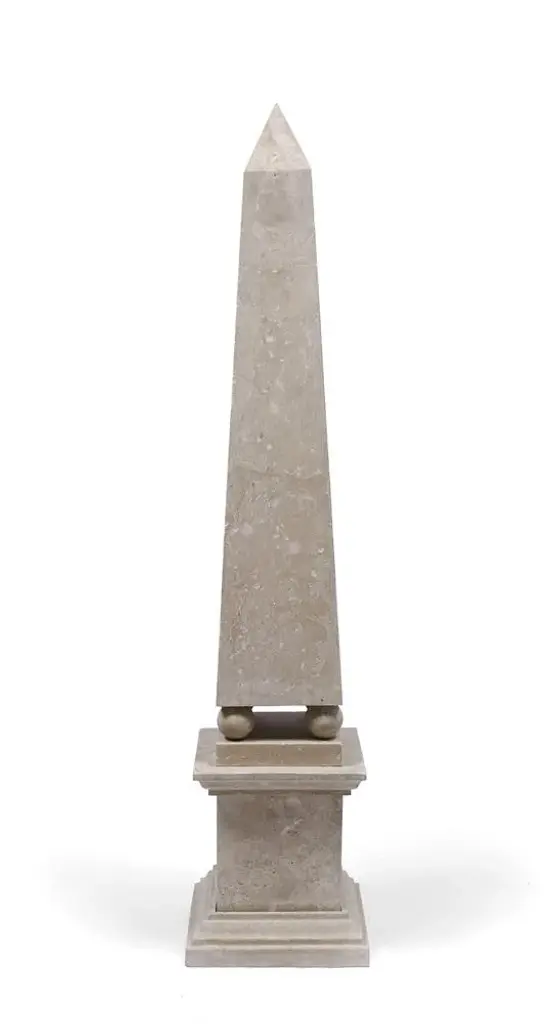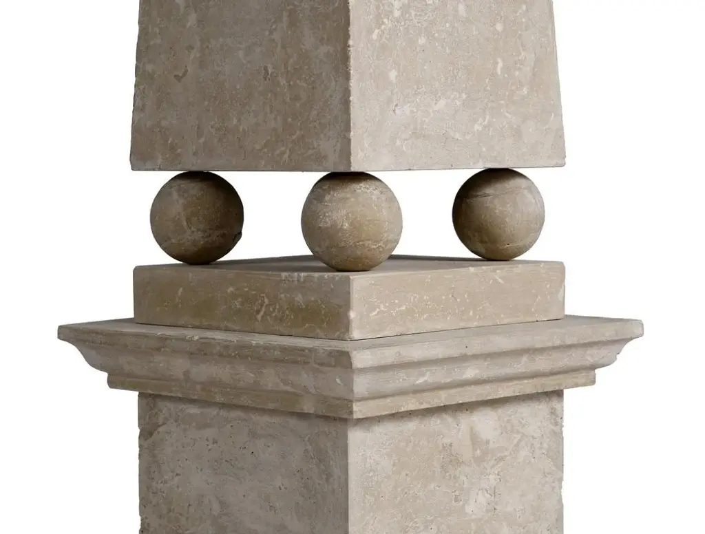 Denoting permanence and longevity, Obelisk Spheres implies eternity, without omitting to reflect that this sentiment also rests on something as unstable and transient as a sphere. Its message intimates something ancient and eternal, about the interface between the permanent and the ephemeral. Each cubic millimetre has been worked by hand in the Four Crowns studio to the highest standards. Scagliola, the material used for the main body of the piece, is made by manipulating plaster and natural pigments. Applying our stone masonry expertise, we have worked the material so that we are able to faithfully mirror rare, lost or ancient stone. Signed by Maker,Labeled by Maker,Labeled with Country of Origin