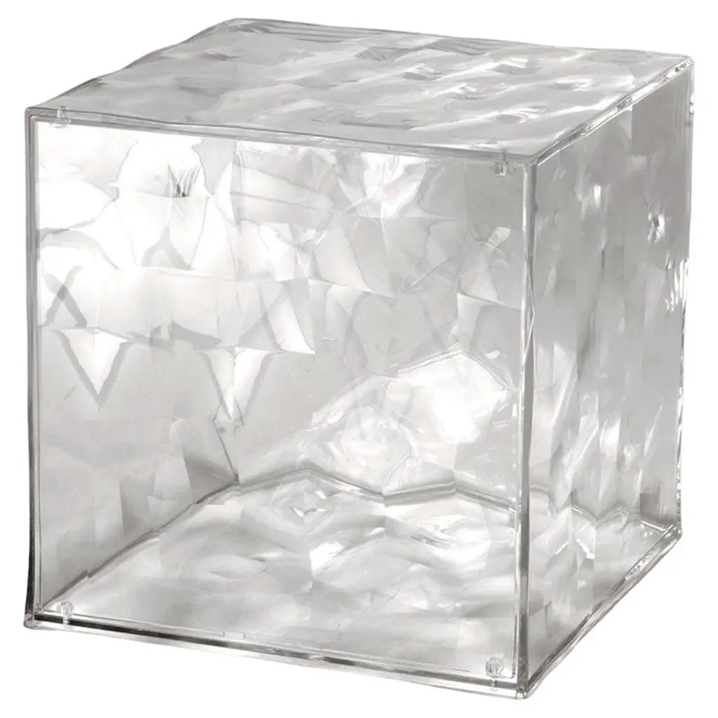 The Kartell Optic Cube Storage designed by Patrick Jouin is an exciting faceted cube with its transparent and mirrored parts that create a special reflected atmosphere. Optic is a container cube which comes in two versions: closed with a door or open without a door. Its surface is strikingly decorated with square based pyramids which whether transparent or mirrored create a strong visual impact.