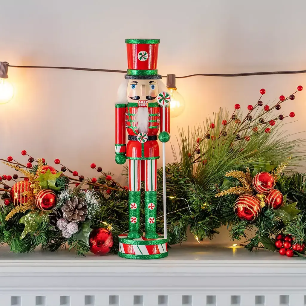 Ornativity Wooden Peppermint Christmas Nutcracker - 15 In