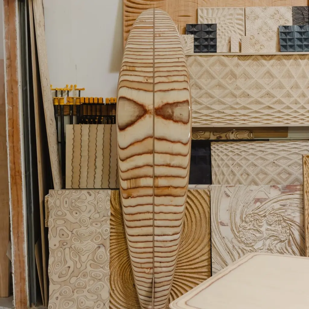 Pure homage to the golden age of surf craft, the Pacific Longboard transforms any wall into a gallery. This sculptural board honors the masters who refined length, weight, and contour to ride the Pacific swell – each piece hand-shaped with techniques passed down through generations of California. Through proprietary woodworking, birch layers reveal their hidden topography – fluid striations that catch light like morning surf, each unique grain pattern a fingerprint of place and time. These boards stand as monuments to innovation, where surfboard shaping became a distinctly Californian art form. Due to its handcrafted nature, each piece is one-of-a-kind, exuding its distinct character and personality.