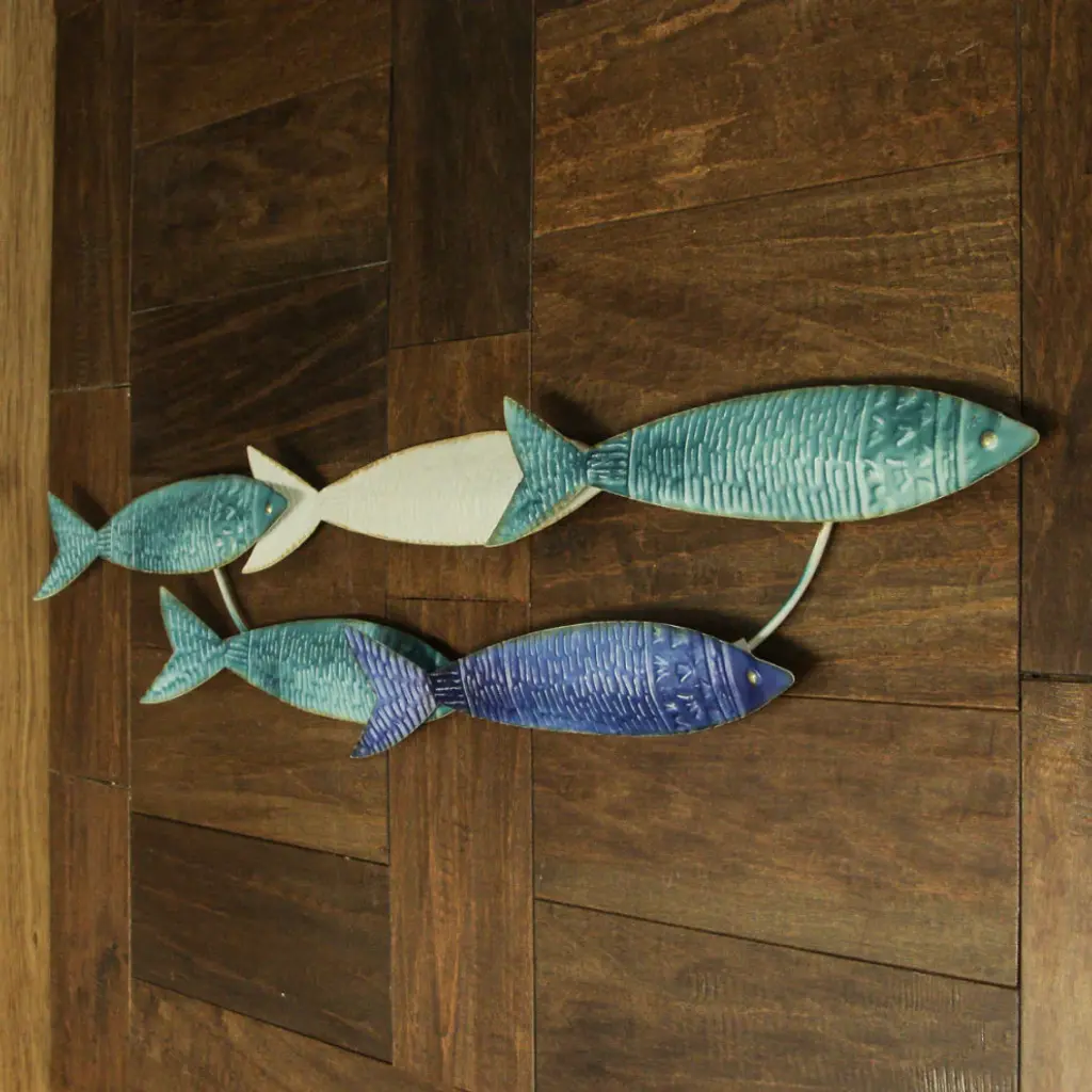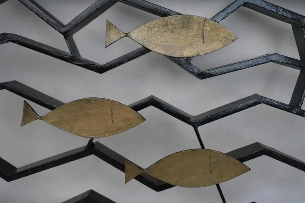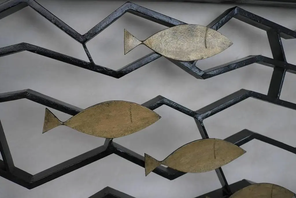 Pair Of Metal Geometric Fence Or Art Object With Golden Fish