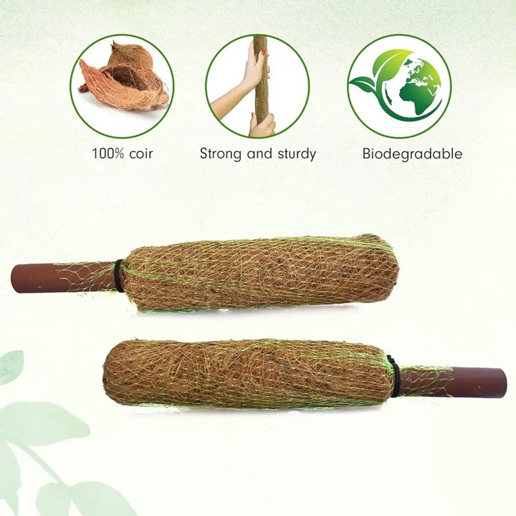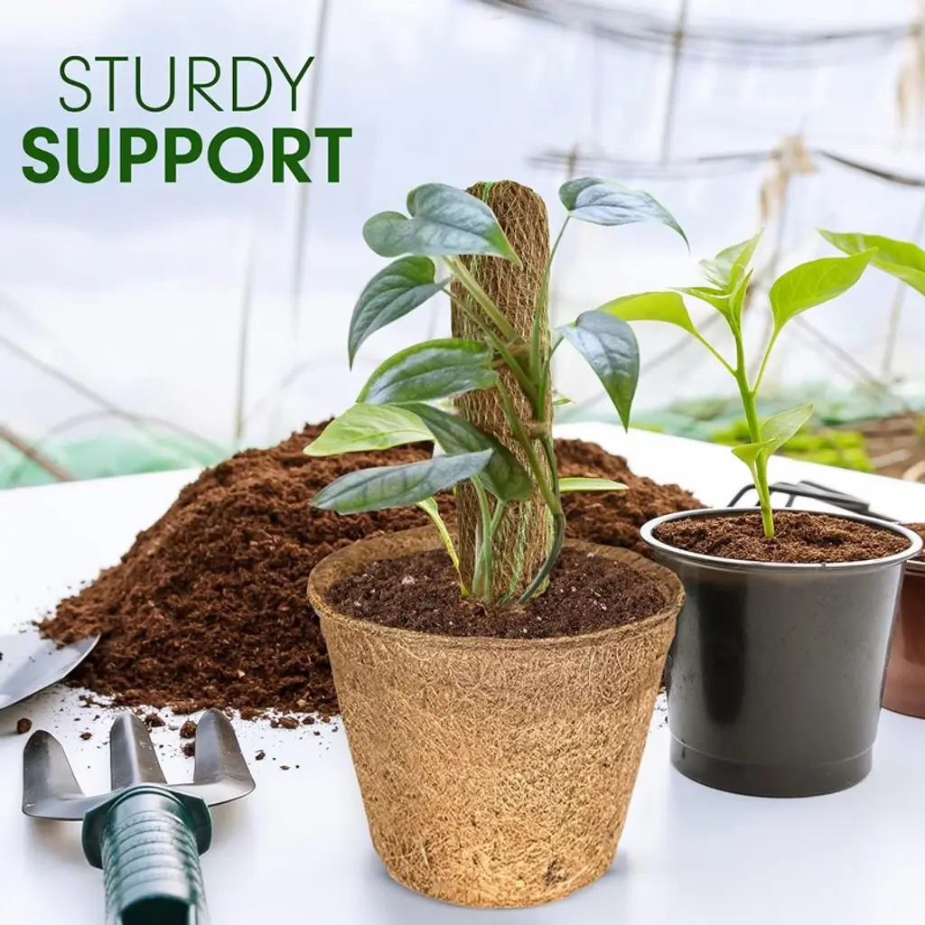 Support the healthy growth of your climbing plants with the Palm Naki Coconut Coir Totem Pole Plant Support Set of 4, available in sizes 12", 24", 48", and 60". Made from 100% natural coconut coir, these totem poles are biodegradable and provide a natural climbing surface for your plants, promoting vertical growth and preventing plant damage. The sturdy coir material combined with a robust internal support stick ensures long-lasting use and reliable support for both indoor and outdoor plants. Ideal for a variety of climbing plants such as monstera, pothos, philodendron, and other houseplants, these versatile coir poles are easy to use. Simply insert the pole into the soil and gently tie your plant to the coir pole to encourage vertical growth. With a range of sizes, you can choose the perfect height for your plants, from small to medium-sized plants with the 12" and 24" options, to larger plants with the 48" and 60" options. The natural, earthy look of the coir material adds a rustic charm to your plant displays, seamlessly blending with your garden or indoor décor. This set of four provides great value, allowing you to support multiple plants effectively.