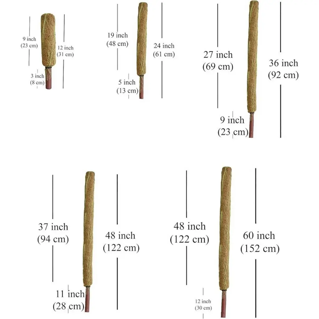 Support the healthy growth of your climbing plants with the Palm Naki Coconut Coir Totem Pole Plant Support Set of 4, available in sizes 12", 24", 48", and 60". Made from 100% natural coconut coir, these totem poles are biodegradable and provide a natural climbing surface for your plants, promoting vertical growth and preventing plant damage. The sturdy coir material combined with a robust internal support stick ensures long-lasting use and reliable support for both indoor and outdoor plants. Ideal for a variety of climbing plants such as monstera, pothos, philodendron, and other houseplants, these versatile coir poles are easy to use. Simply insert the pole into the soil and gently tie your plant to the coir pole to encourage vertical growth. With a range of sizes, you can choose the perfect height for your plants, from small to medium-sized plants with the 12" and 24" options, to larger plants with the 48" and 60" options. The natural, earthy look of the coir material adds a rustic charm to your plant displays, seamlessly blending with your garden or indoor décor. This set of four provides great value, allowing you to support multiple plants effectively.
