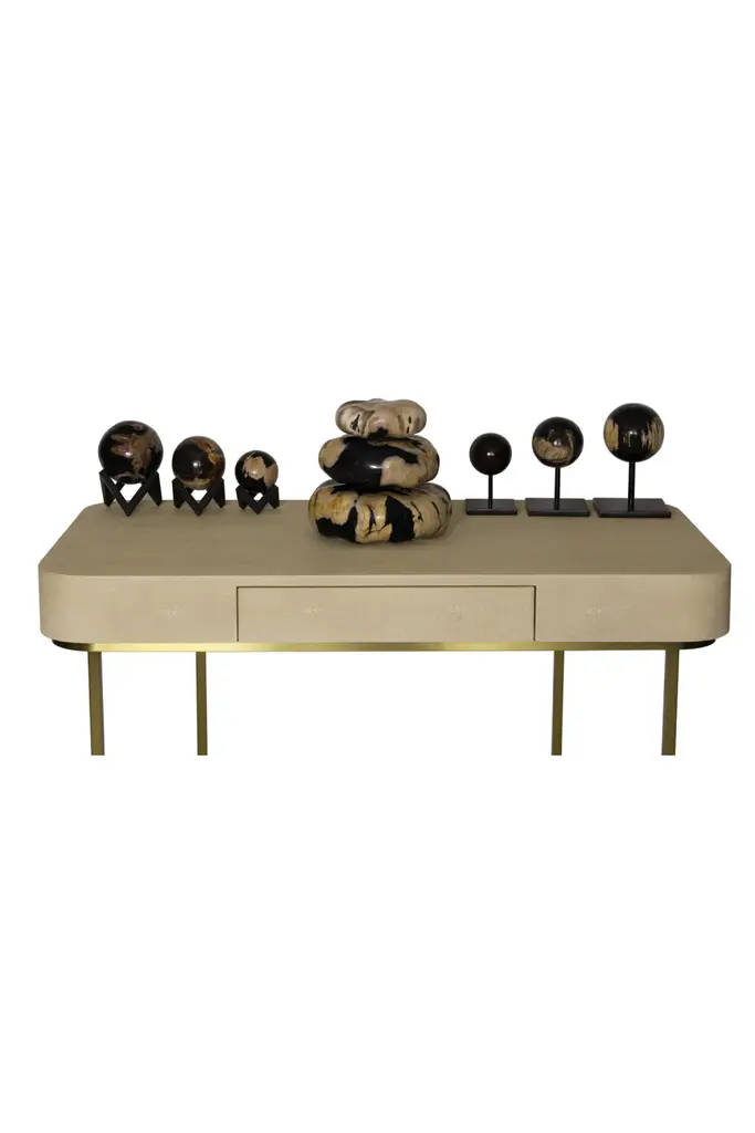 An entirely unique accessory, made from naturally formed, hand-polished petrified wood, the Petrified Wooden Sphere is ideal for adding a touch of character and flair to your interiors. Petrified wood is the result of permineralization which turns wood to stone. The process takes place when wood becomes buried under sediment or volcanic ash and is preserved due to a lack of oxygen. As a result, each of these decorative pieces are one-off product and will vary in appearance, some lighter, some darker, as the original wood grain dictates.