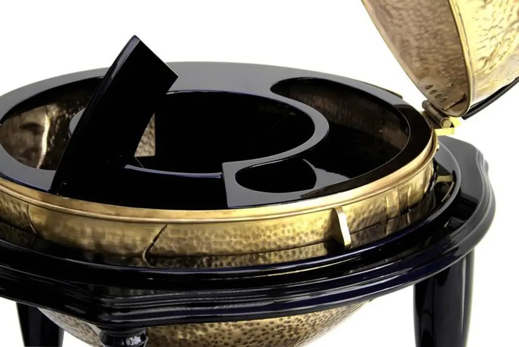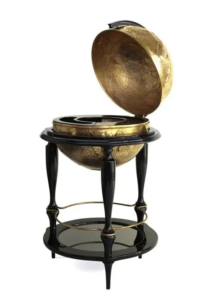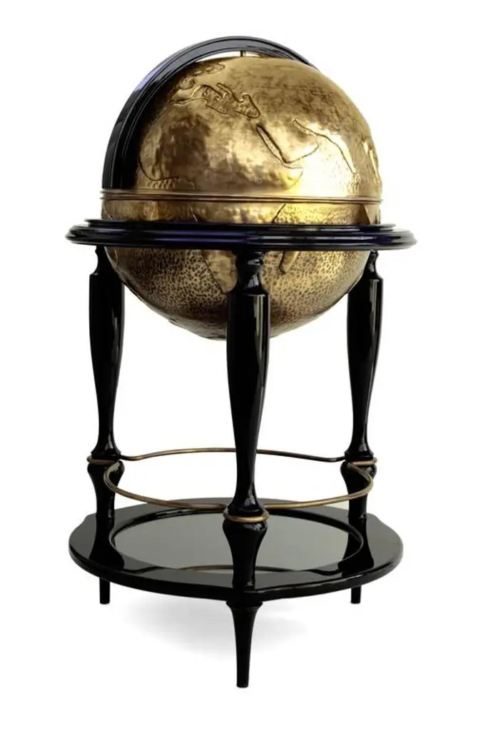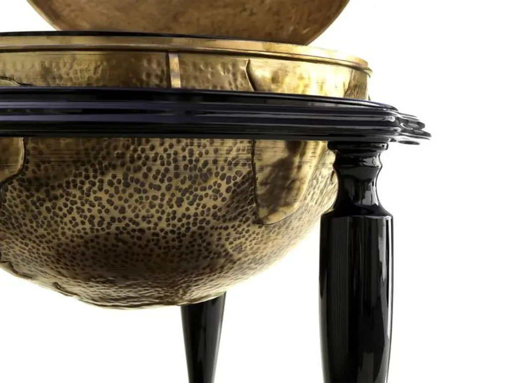 Planisphere Copper Bar Hand-Hammered Black Lacquered Wood And Glass