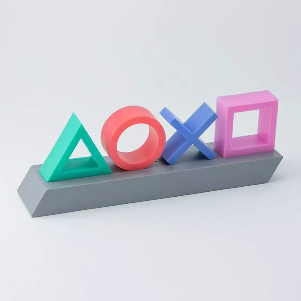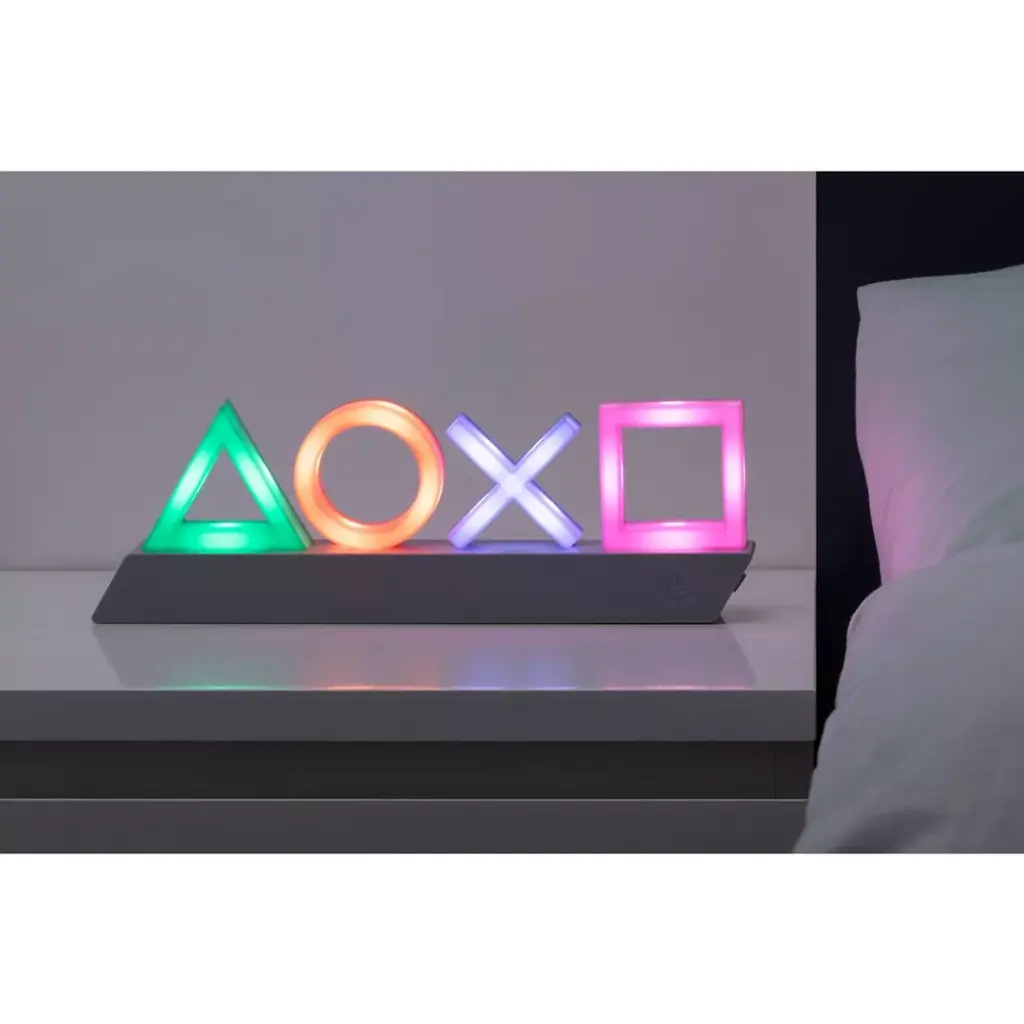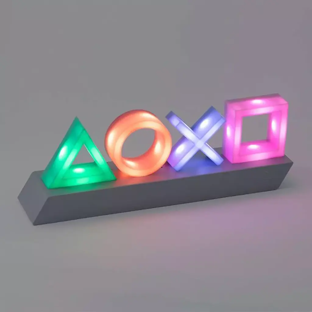 Perfect for gamers, this PlayStation Icons Light features the classic PlayStation controller button symbols on a sleek black plinth, making an ideal addition to any bedroom or gaming den. Featuring three different settings, including standard lighting, color phasing and music reactive modes, the PlayStation Icons Light is the perfect accompaniment to your gaming. The first gaming console to ever ship 100 million units, the original PlayStation was launched by Japan based electronics company Sony in 1994, rapidly becoming one of the best known gaming brands in the world. With successive consoles building on that original unprecedented success (including the best-selling console of all time, the PlayStation 2), the iconic image, name and logos of the Sony brand are instantly recognizable with gamers of all ages. The PlayStation controller, with its distinctive shape and iconic button symbols of a green triangle, blue x, red circle and pink square, are now virtually synonymous with console gaming in general. This product is made using BDP™ which stands for Breakdown Plastic™ - an organic additive that helps plastic decompose at landfill without affecting either its structural integrity (before landfill) or the recyclability of the product. A great gift for gamers of all ages, the PlayStation Icons Light is an officially licensed product.