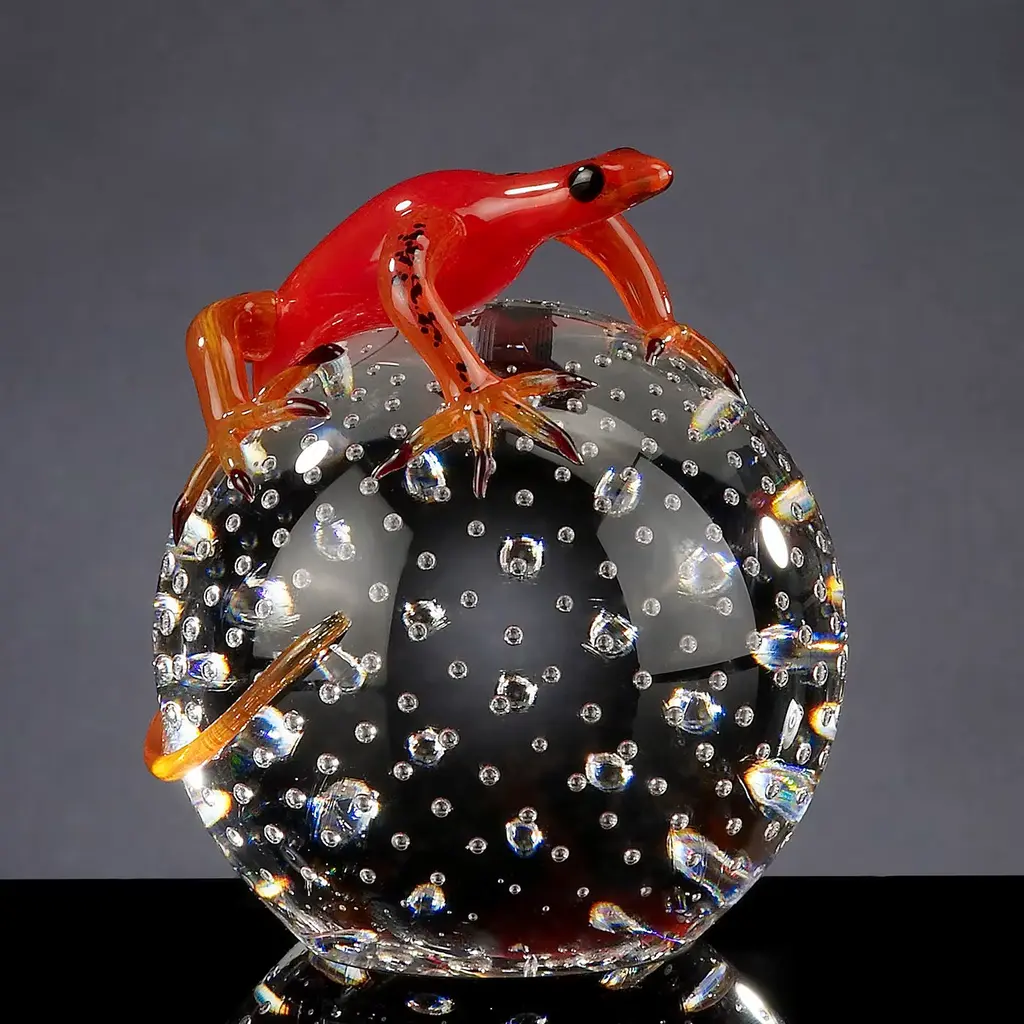 Red Glass Gecko On Sphere