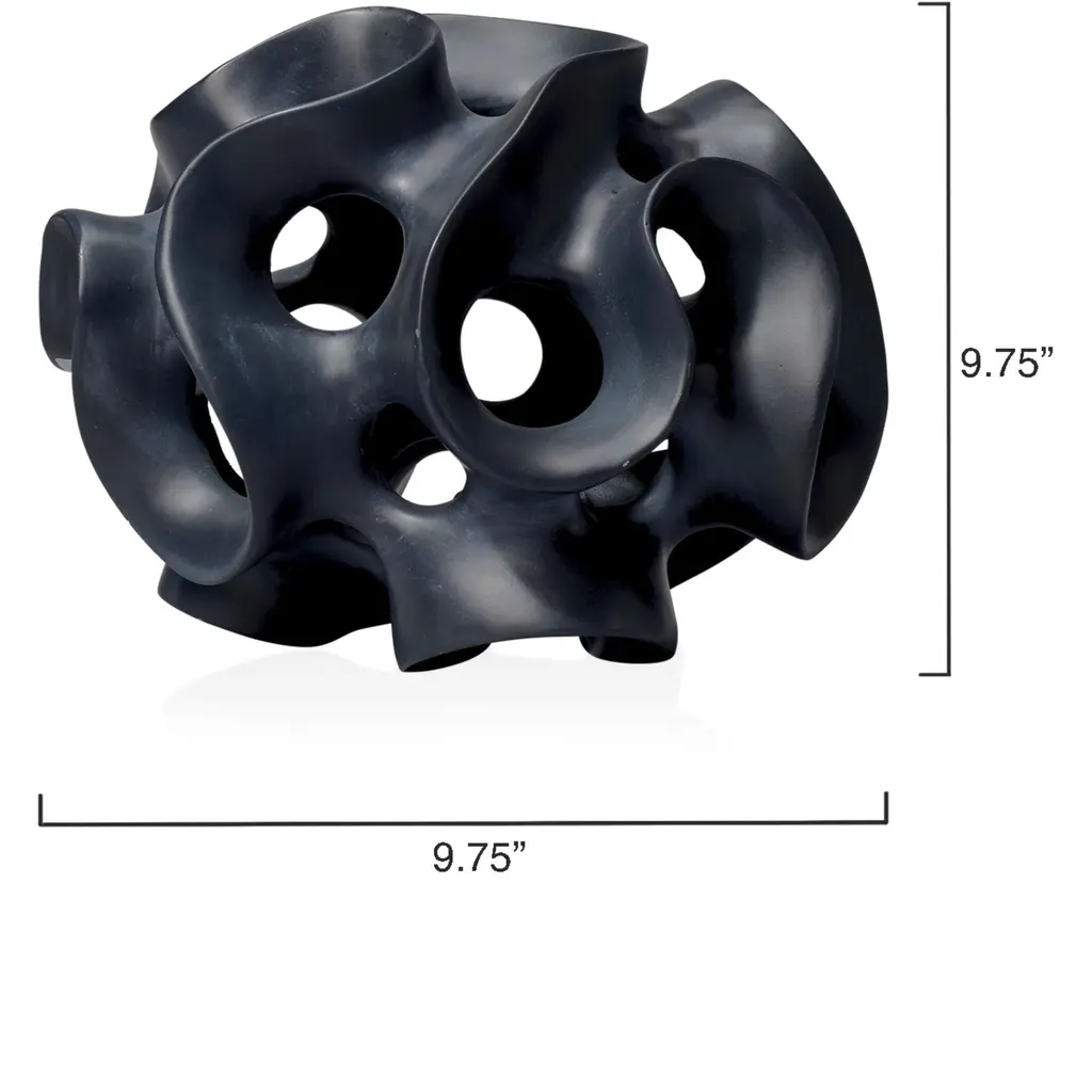 This whimsical resin sphere is reminiscent of ocean coral, and its undulating ribbon shape suggests the natural movement of an aquatic environment. The matte black finish adds even more visual interest for a touch of unexpected drama that defies categorization. This sculptural accessory is sure to be a favorite accent anywhere in your home.