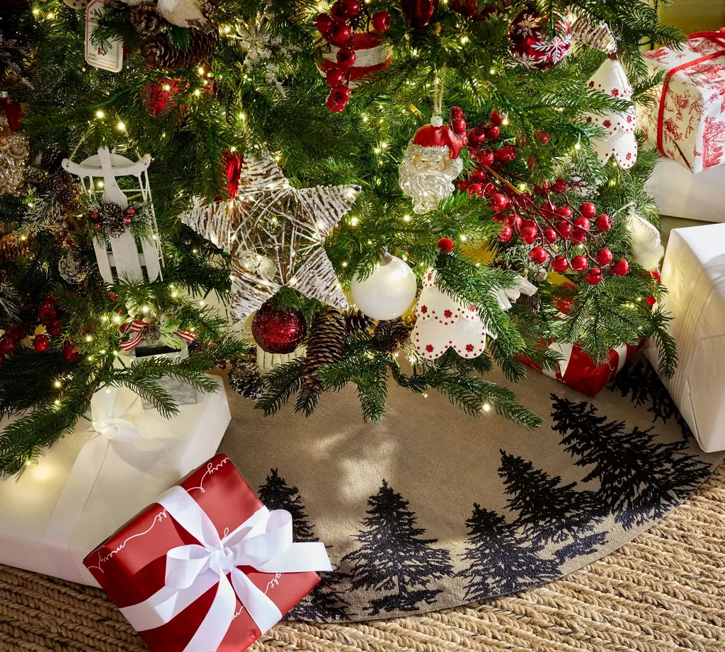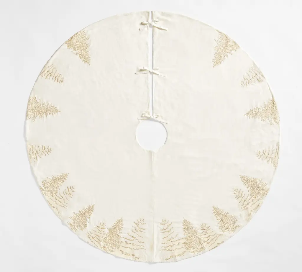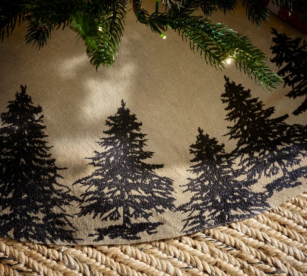 We love this Christmas tree skirt because it’s embroidered with the silhouette of wintry evergreens. Richly textural and sewn in touchable linen and cotton, it comes in rustic, neutral colors. Pair this beauty with our matching stockings to complete your hearth-side ensemble.