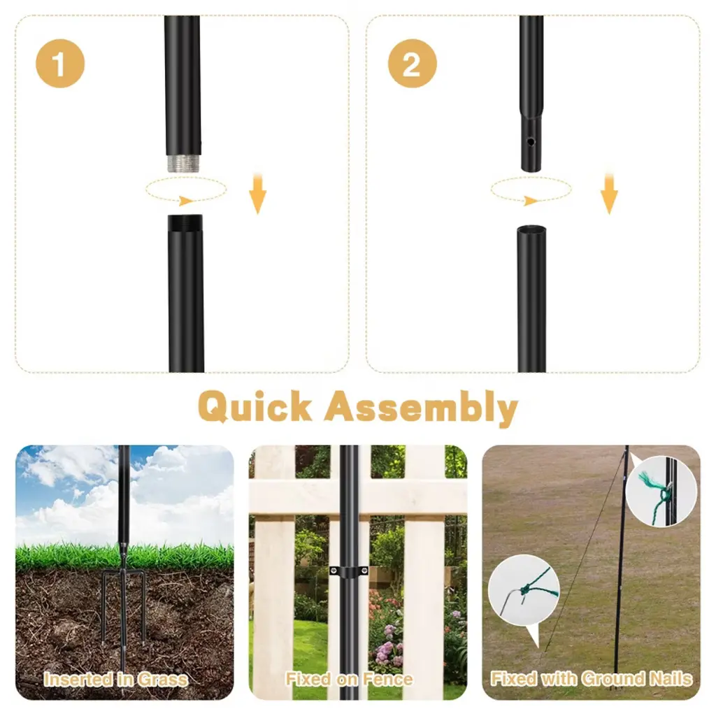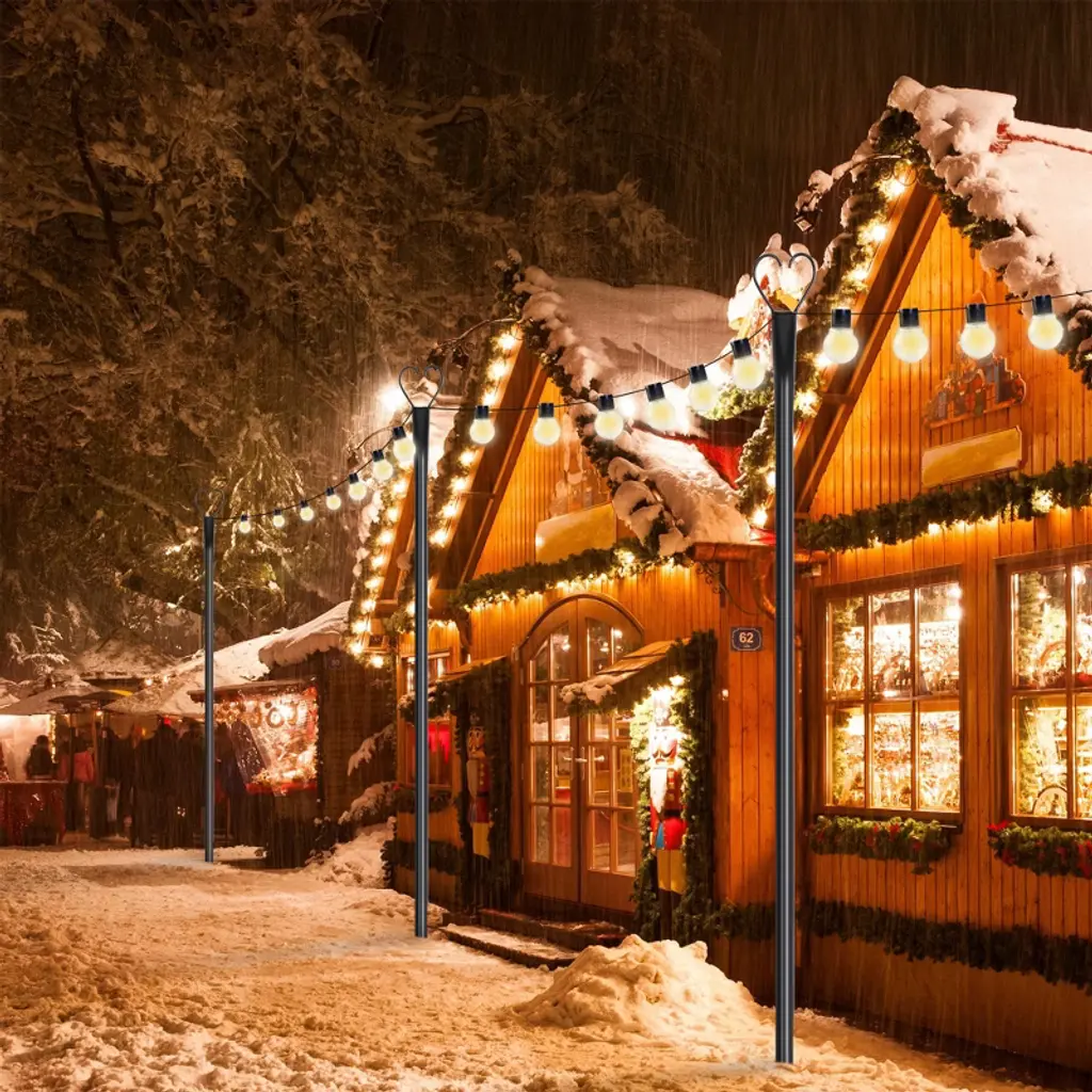 Are you looking for something to decorate for Christmas. Our 6-Pack String Light Poles and 49 ft. LED String Lights may be just what you want. Each string light pole has 2 optional bases and 3 installation methods, so that it can be inserted into the soil, grass, concrete, wooden floor, deck or screwed to the railing. Besides, the String Lights with 25 bulbs are powered by solar energy, suitable for outdoor use, like your patio, garden, wedding, party and so on. Made of heavy-duty iron with rustproof paint and using a screw-in connection, the 5-prong fork pole is more sturdy and stable than others on the market.
