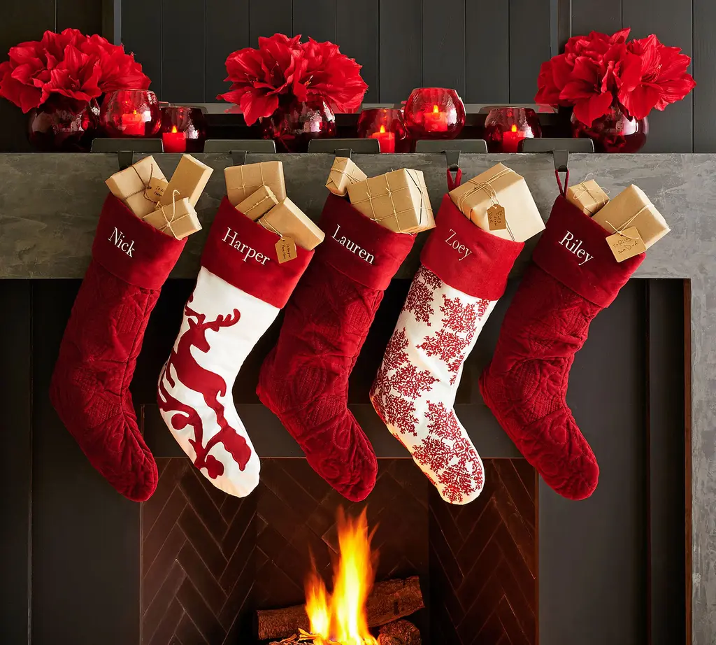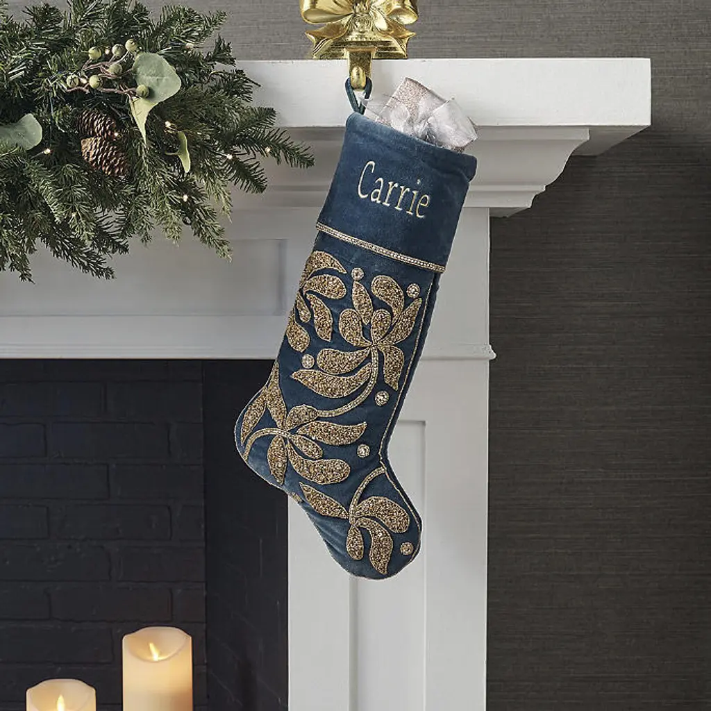 Plush and soft, our velvet stocking decks the mantel with warmth and provides a luxurious setting for those special gifts. It’s quilted entirely by hand in a large traditional pattern on matte cotton velvet and lined for sturdiness and durability.