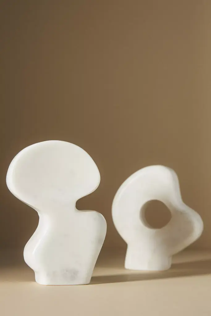 Crafted from a marble palette of whispering whites and gorgeous greys, these midcentury-modern-inspired sculptures lend a touch of timeless tranquility to any interior.