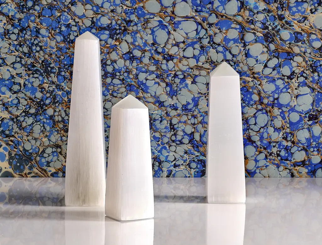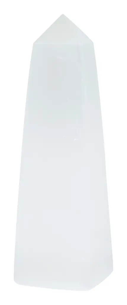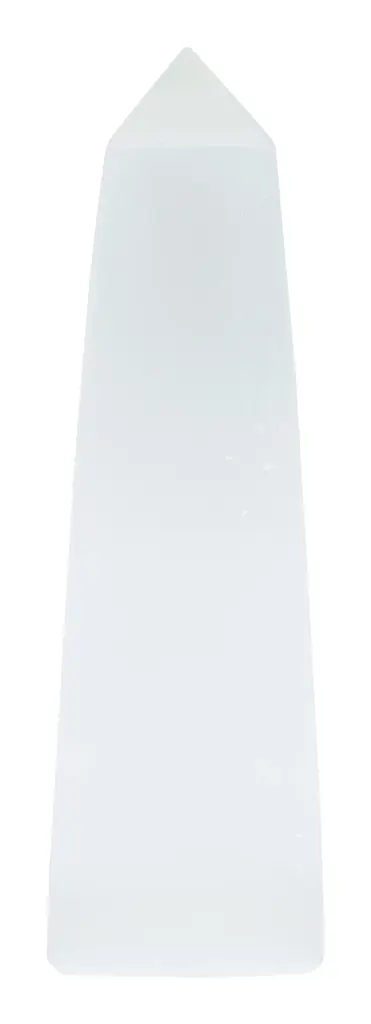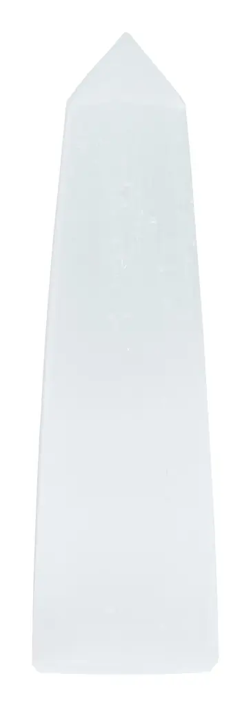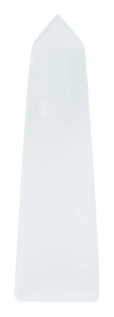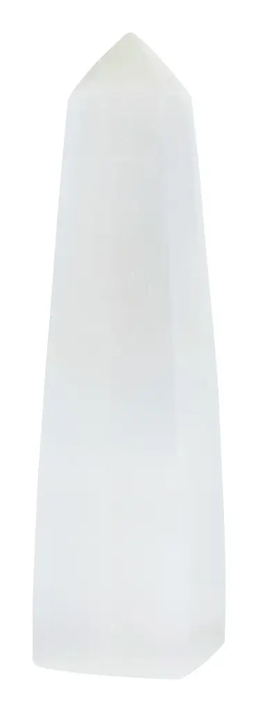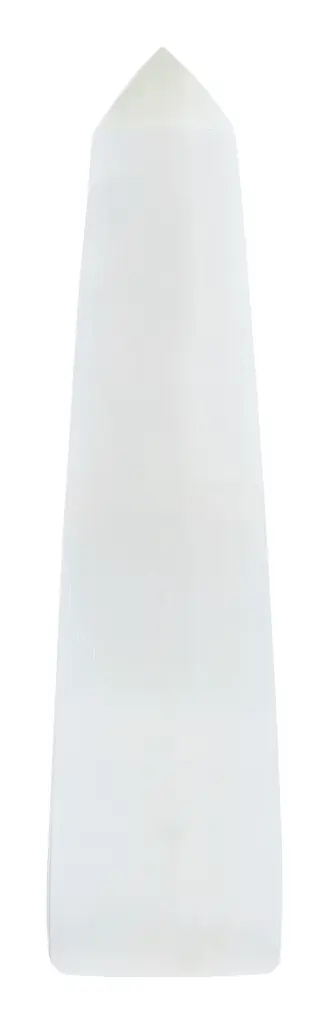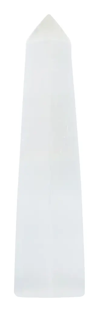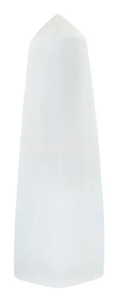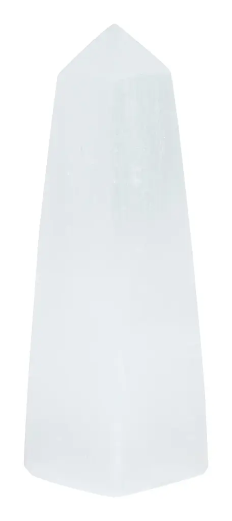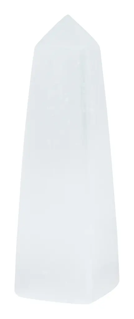 A symbol of the sun god Ra, obelisks were a prominent part of ancient Egyptian architecture, often found in pairs at temple entrances. A scaled-down version of these grand monuments, our Selenite Obelisk was handcrafted in Morocco from natural selenite — a crystalized form of gypsum that is prized for its milky white translucent hue and subtle sparkle. Grab just one and add a bit of natural beauty and archaic style to your tabletop vignette — or go for a grouping in all three sizes to create an ethereal landscape in miniature. We especially love our Selenite Obelisks placed near a light source, which will give them a soft glow. •natural selenite •morocco•each is unique Dimensions •small: approximately 2.25"W x 2.25"D x 8"H•medium: approximately 3"W x 3"D x 10"H•large: approximately 3.25"W x 3.25"D x 12"H
