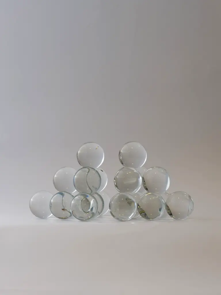 Minimalist yet sculptural, the Clear Crystal Sphere Bookends – Set of Two are designed to elevate your bookshelf with a refined sense of light and form. Each bookend is composed of stacked crystal-clear spheres, forming an elegant, geometric silhouette that reflects and refracts light beautifully. These functional objects double as decorative accents—perfect for modern interiors where transparency and structure meet in perfect balance.