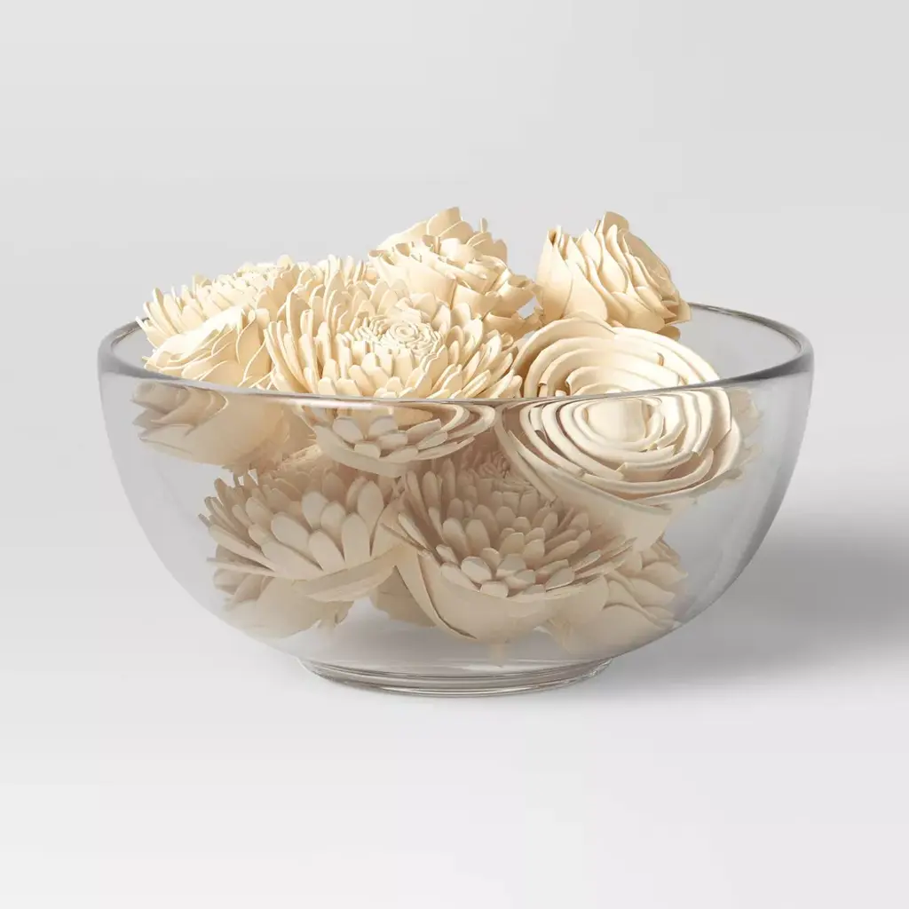 Add a natural floral touch to your decor with this 15-Piece Shola Flower Filler in Cream from Threshold™. This pack of decorative filler makes a great addition to your decor, lending added interest to bowls, baskets, broad vases and more. It includes several different types of wood shola flowers for a textured look with natural appeal, while its light cream shade blends effortlessly with a range of color schemes. Place this decorative vase filler on entryway consoles, bookshelves, coffee tables or anywhere else you please for a light and bright floral decor accent.Threshold™: Quality & Design / Casual classics for house and home.