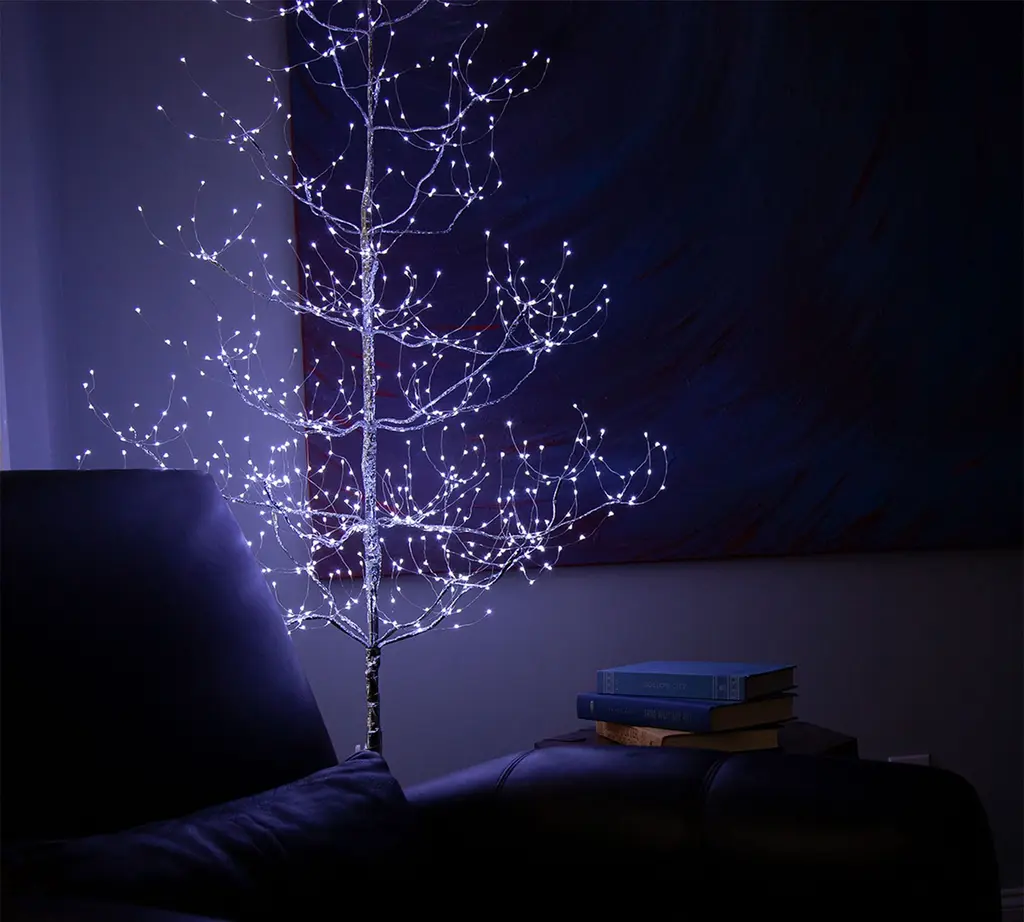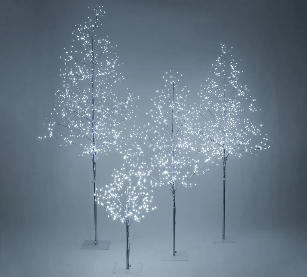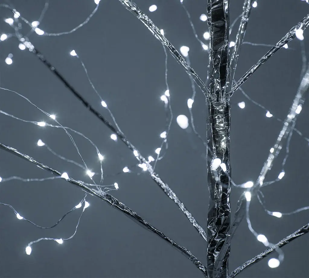 Create a magical wintertime scene with our pre-lit fairy trees. A wire trunk supports delicate branches, each tipped with tiny cool-white LED lights that cast an ethereal glow.