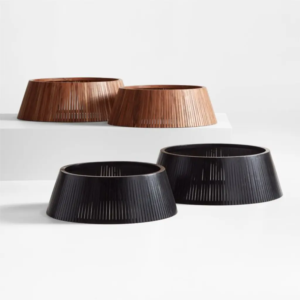Shaped like an oversized cuff, our Skei tree collar fits over and hides a tree stand while enhancing the look of your Christmas tree with beautiful acacia wood. Lengths of black-finished wood piece together in the round, giving the tree collar a ribbed look.