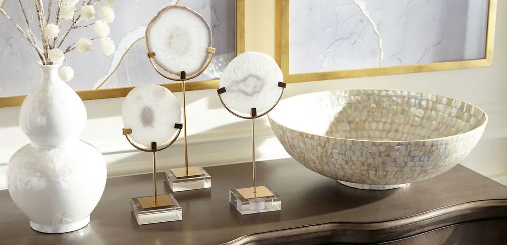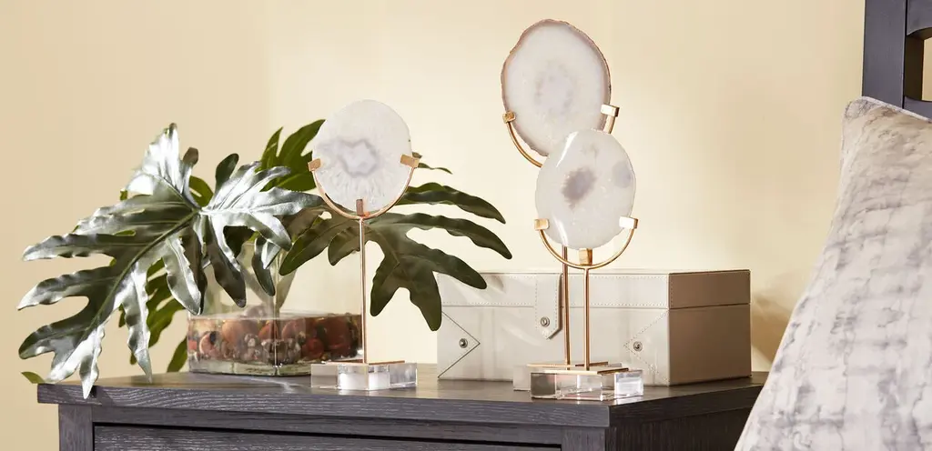 When you're looking for a one-of-a-kind decorative accent, look to nature for inspiration. That's how we were inspired to create our agate decor: Our artisans handpick beautiful slices of agate, each one with its own unique markings, mounting the sliced agate on a stand made of untreated, lead-free crystal.