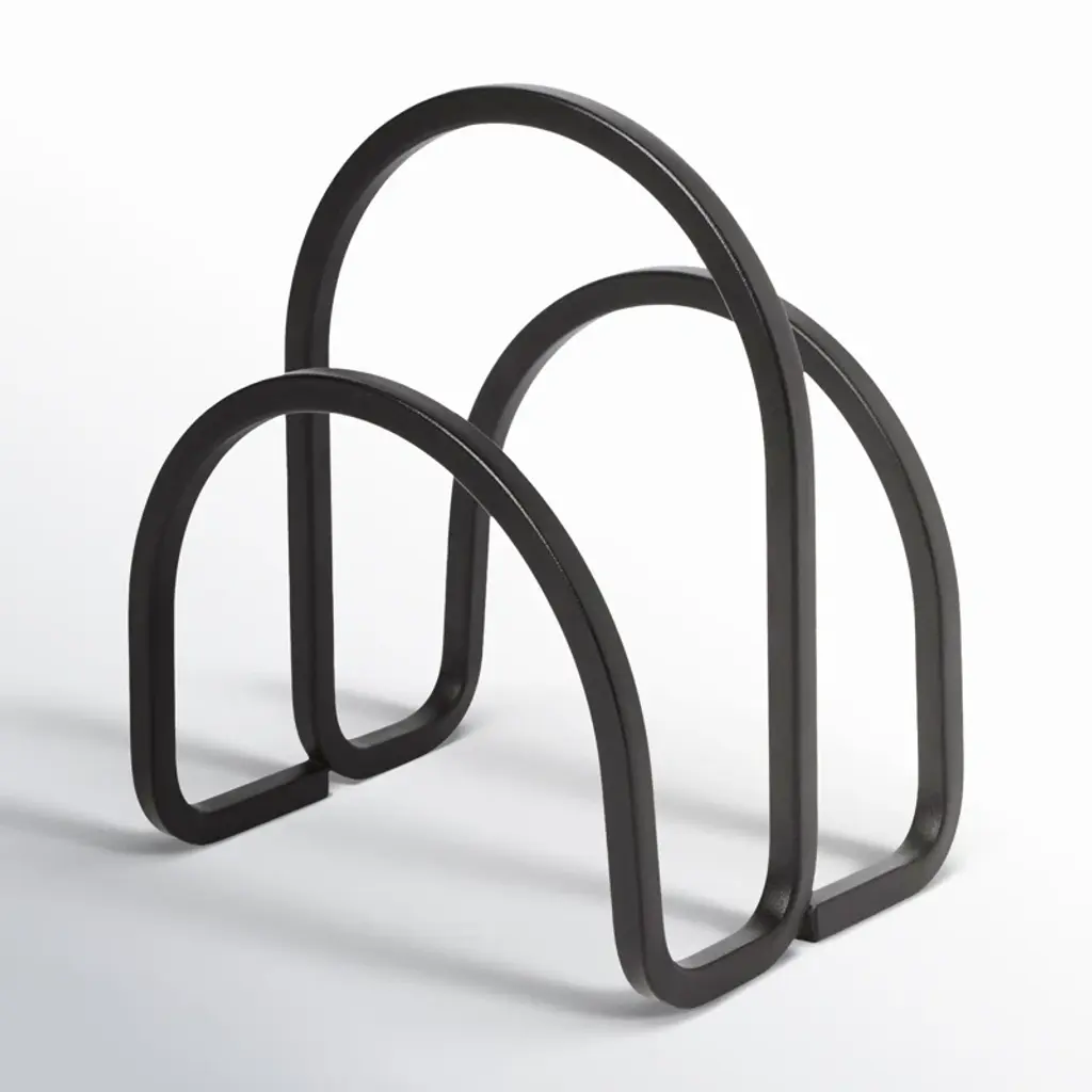 The Springe Decorative Object consists of a pair of accessories, each showcasing three elegant arches seamlessly interlocking. Crafted from iron metal, these pieces are beautifully finished in matte white with subtle gray speckles, lending a touch of texture. Their varying levels add a captivating dimension and enhance the aesthetic of any surface they adorn.