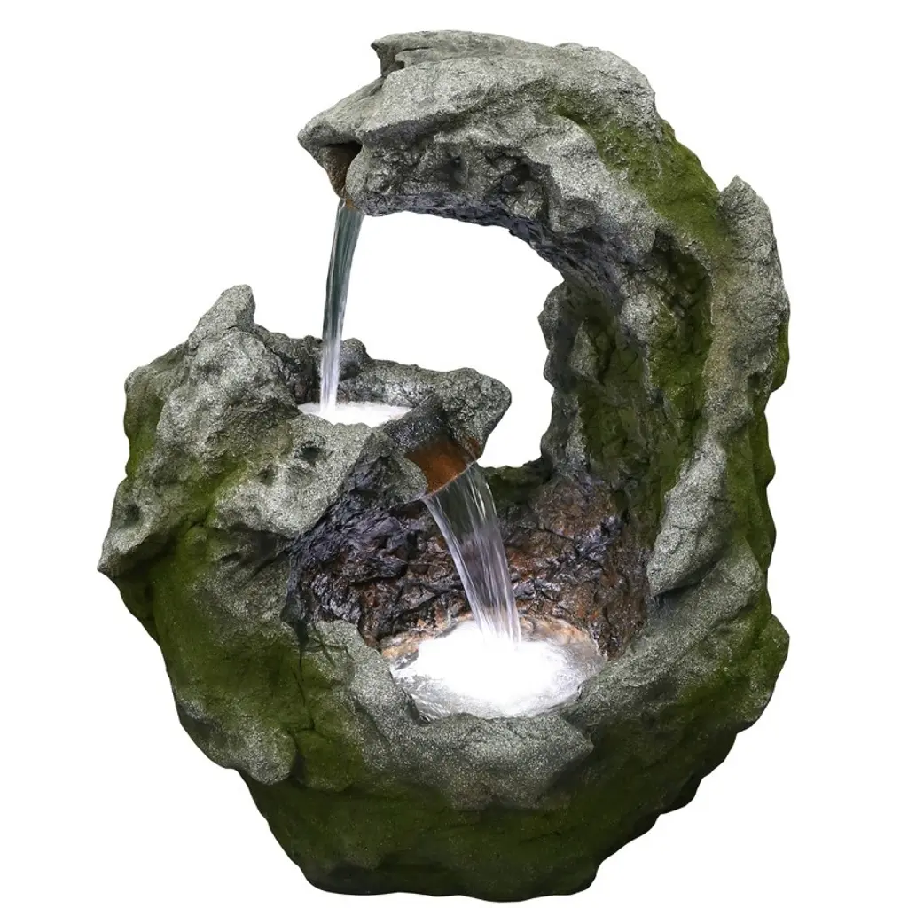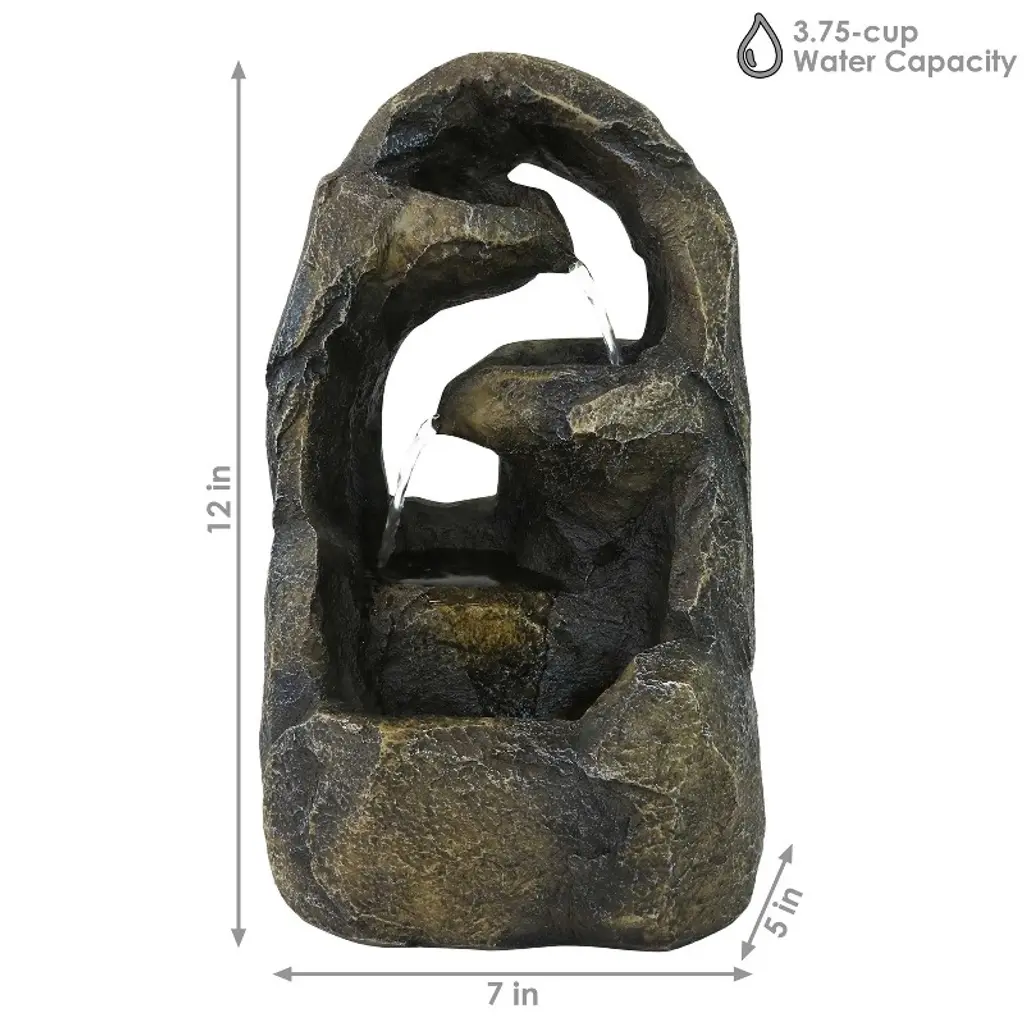 Sunnydaze Indoor Home Office Decorative Resin Cavernous Rock Tiers Tabletop Water Fountain Feature - 12"