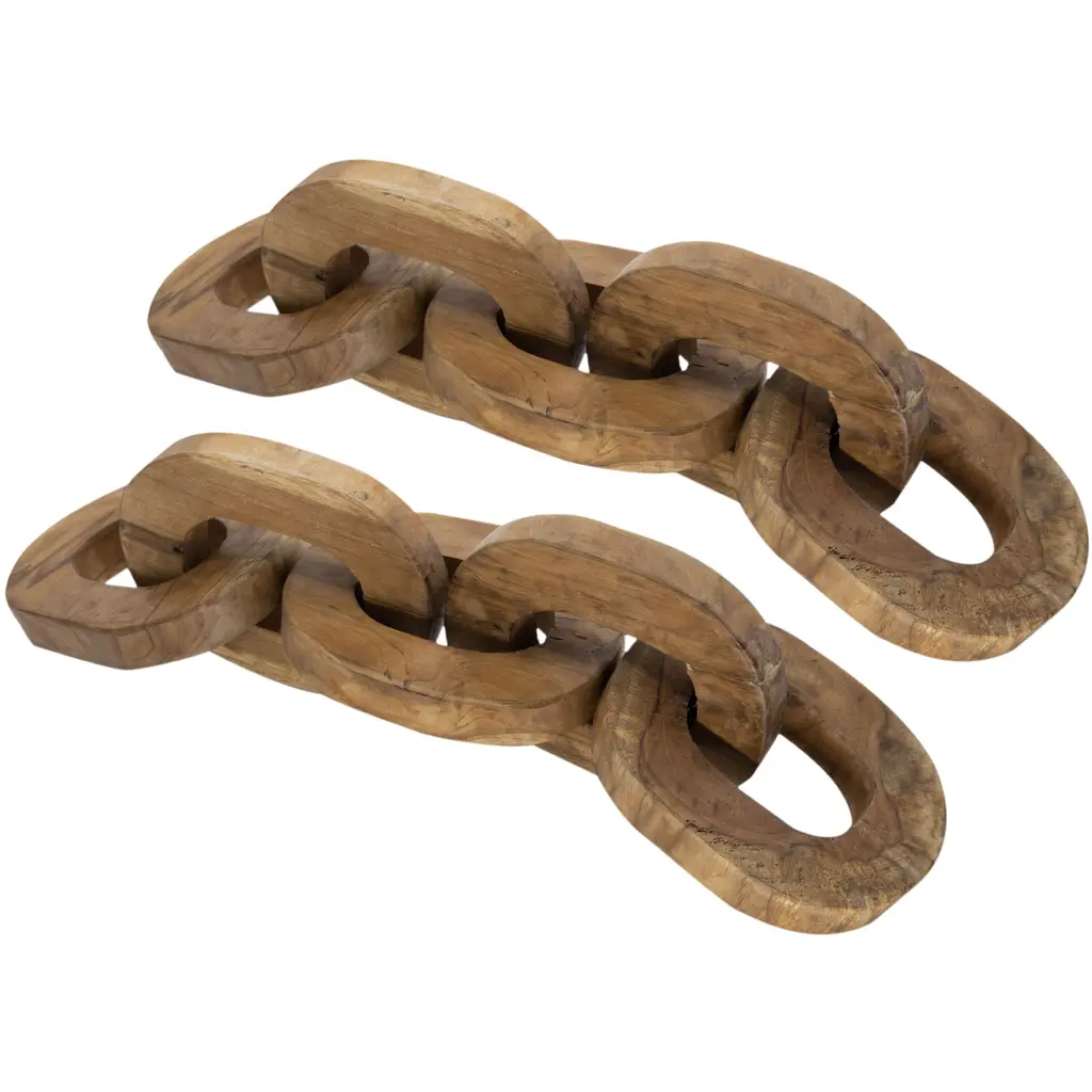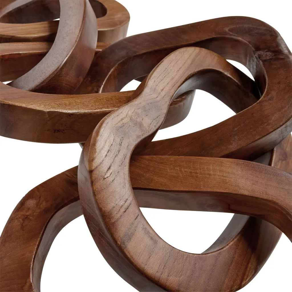Six organically shaped, oversized links loop together to form this dramatic decor piece, crafted from natural teak in a deep brown hue. At over three feet long, it makes a statement draped along the mantel, piled in a large bowl or gathered into an eye-catching centerpiece display.
