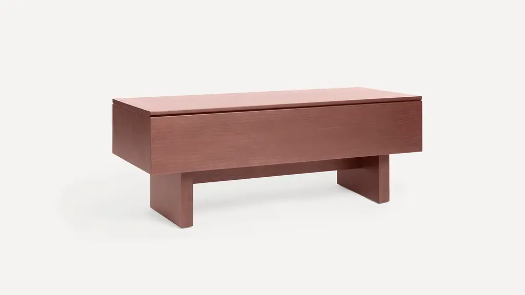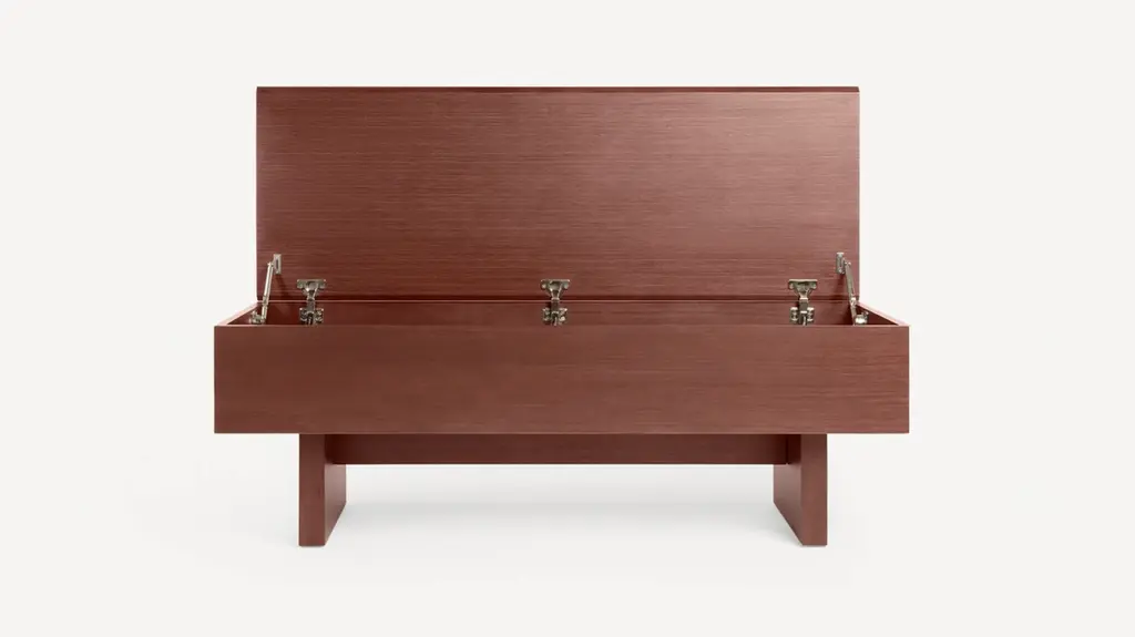 The Totem Wood Bench combines minimalist design with maximum functionality. It features a lift-up seat revealing ample storage space. With its minimalist design and dynamic features, this piece can serve as a storage for linens or a coffee table, making it a versatile addition to your home. | Burrow Totem Bench
