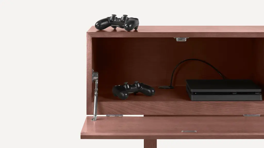 The Totem Wood Credenza showcases contemporary aesthetics with clean lines and a monolithic silhouette. Crafted from both solid and engineered wood, it features slow motion hardware and ample storage space. To complete the contemporary living room look, pair it with its counterpart, the Totem Bench. | Burrow Totem Credenza