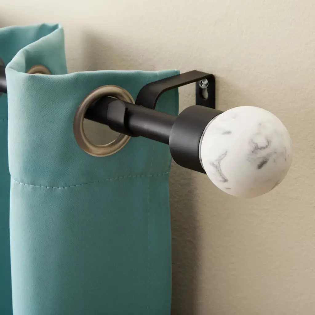 This chic curtain rod and finial set includes two modern marbled sphere-shaped finials, brackets, and easy-to-follow instructions for stress-free installation. With a polished design and easy maintenance, this curtain rod is the perfect blend of style and function for any room.