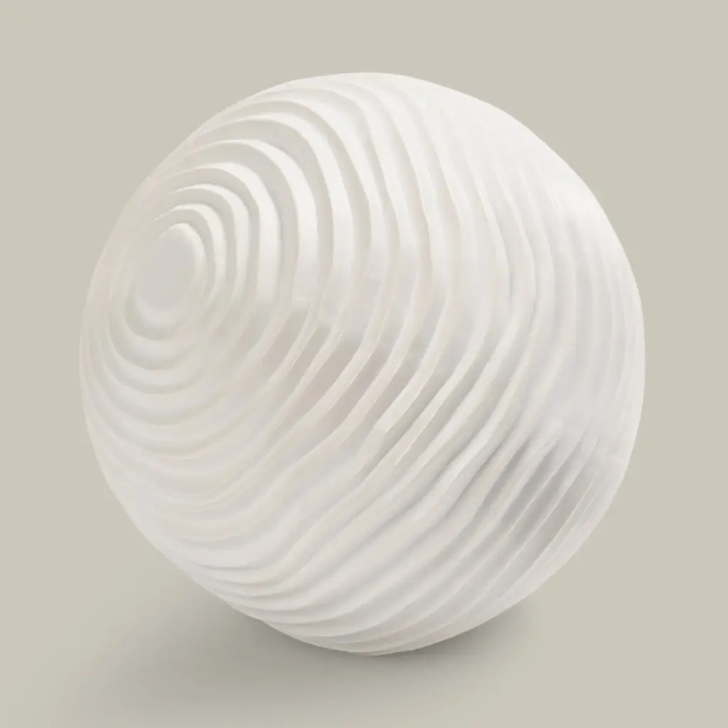 Hand-thrown in a matte ceramic, this sculptural sphere recalls the elemental geometry of Brancusi. Pure, tactile, and resolute, an etched surface invites a dialogue of shadow and reflection, grounding the room in quiet rhythm. Whether placed alone or in a considered composition, it becomes more than decor: an artifact of presence and restraint.