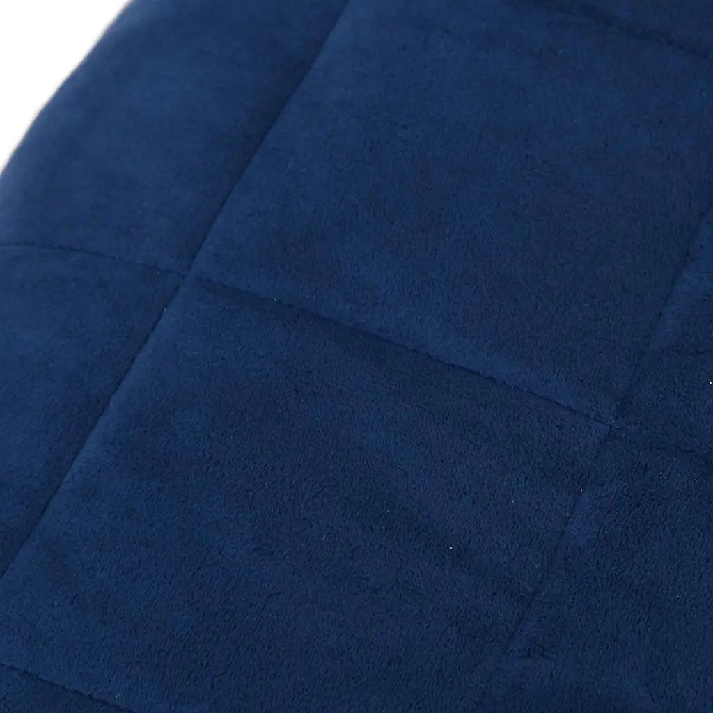 This weighted blanket gives a warm and calming hug for adults, expertly crafted to help ease anxiety and boost your sleep quality. Made from top-notch materials, it has a plush blue fabric exterior with a brushed finish, creating a cozy vibe in your bedroom. Weighted Design: The 28.7 lb blanket is made to spread even pressure across your body, making you feel secure and comfy. Weighted blankets are known to help folks chill out and reduce nighttime stress, transforming any bed into a relaxing cocoon. High-Quality Materials: Made from polyester and stuffed with hypoallergenic glass beads, this blanket is durable yet kind to the skin. This combo not only feels fantastic but is great for those with sensitivities, making it a top choice for everyone. Elegant Aesthetics: With its striking blue hue and quilted style, this blanket brightens up the look of your bedroom. It’s both practical and a classy decor piece that adds a serene touch to your space. Compact and Portable: Measuring 78.7 x 78.7 in, this blanket isn't just for your bed; easy to toss on the sofa or take with you when traveling. Its flexibility means you can snuggle up wherever you need comfort most. Care and Maintenance: Keeping your weighted blanket in top shape is easy; just hand wash it to keep it nice. This way, your blanket stays soft and welcoming for many nights to come.
