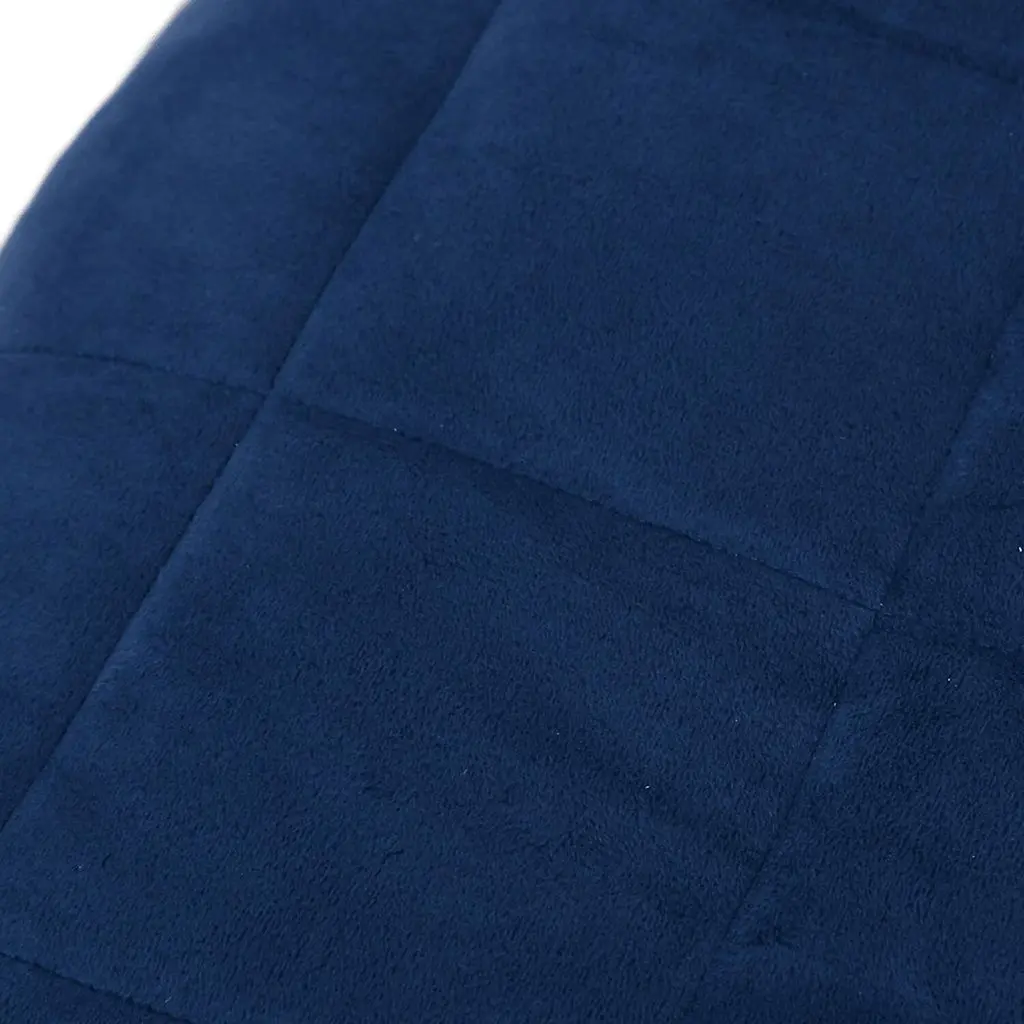 This weighted blanket, measuring 59 in x 79 in, provides calming relaxation for those seeking comfort and tranquility. Perfect for indoor use, its modern blue design fits nicely with bedroom decor, creating a peaceful sleep space. Breathable Material: The blanket’s fabric promotes airflow, keeping you comfy while ensuring cozy nights. Enjoy a breathable warmth that soothes and comforts. Weighted Stability: With its heavy base, this blanket stays in place, giving you the secure feeling needed for a good night’s sleep. Calming Effect: It’s specially designed to help relieve stress and tackle anxiety, wrapping you in gentle pressure that creates a peaceful space for unwinding. Modern Style: Its clean and functional design fits perfectly into contemporary home decor, blending well with various color schemes while looking good. Care and Maintenance: Spot clean to keep the blanket's shape and comfort, ensuring it's ready to provide its calming features whenever you need it.