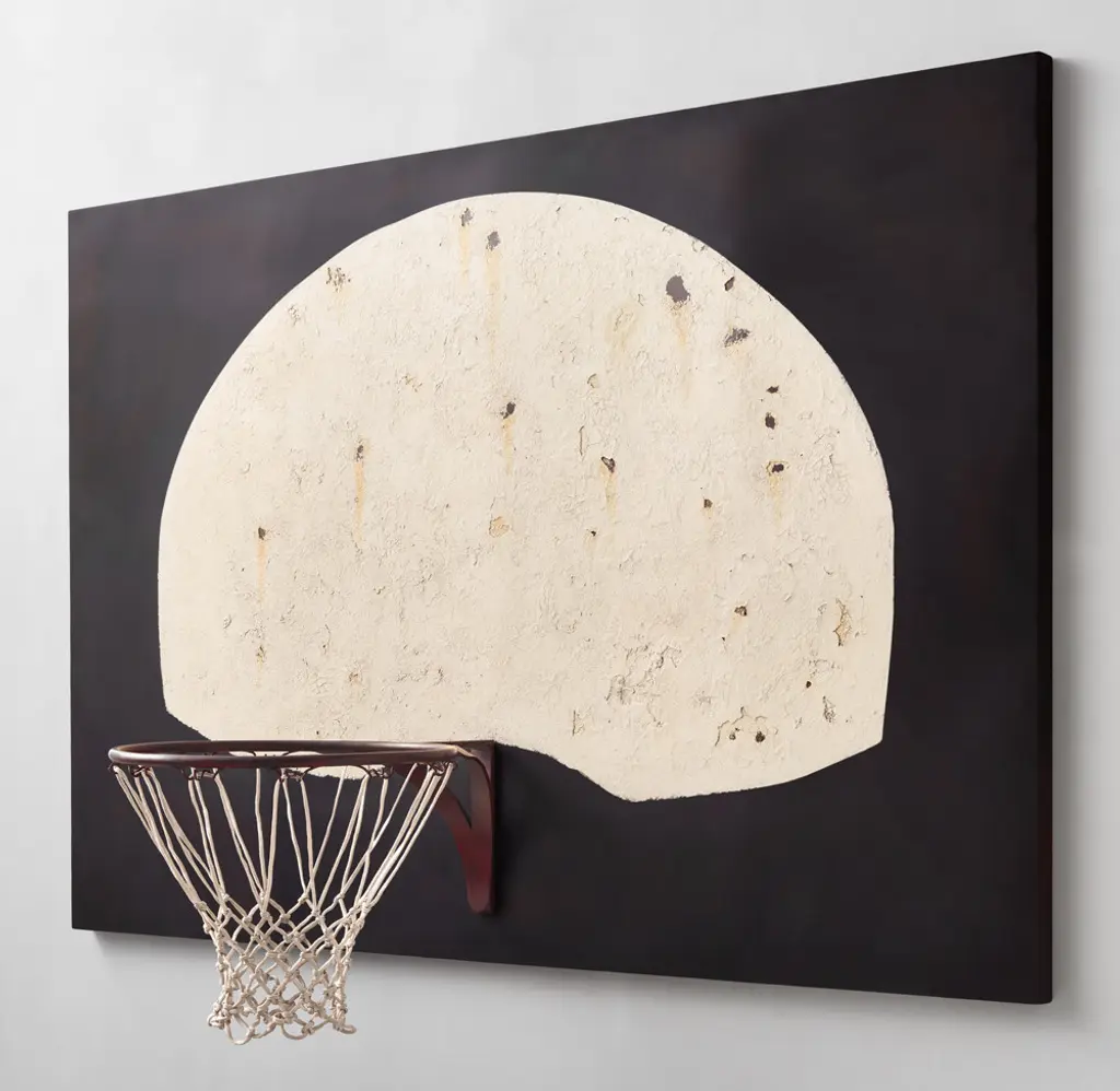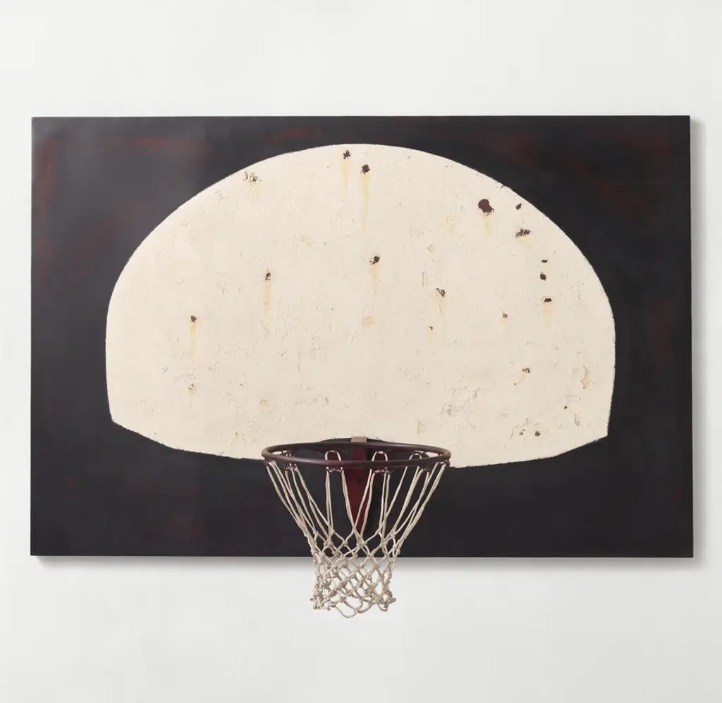 Hoop dreams. Set on a wood backboard painted to replicate an original gym installation, our regulation-size, vintage metal-framed net puts your room right in the paint.
