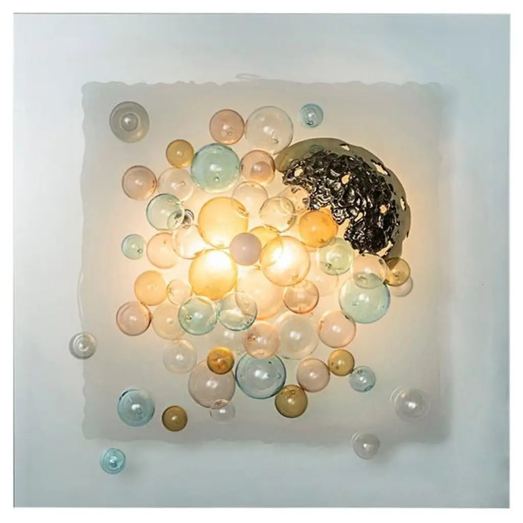 This is a large set of 16 spheres including three 8" pieces. As shown, it covers approximately 8 square feet of wall space and makes a very bold statement. Every piece is hand crafted blown glass that has a crackle finish. However you arrange these spheres you will create wall art that adds a fun and stylish note to your interior.In your Set of 16 - Crackle Wall Spheres kit, you get:1 - 3" Lime Crackle Sphere1 - 3" Amber Crackle Sphere1 - 3" Denim Crackle Sphere1 - 3" Mint Crackle Sphere1 - 3" Aqua Crackle Sphere1 - 3" Lavender Crackle Sphere1 - 3" Lemon Crackle Sphere1 - 4.5" Clear Crackle Sphere1 - 4.5" Lime Crackle Sphere1 - 4.5" Amber Crackle Sphere1 - 4.5" Teal Crackle Sphere1 - 4.5" Lemon Crackle Sphere1 - 6" Sky Crackle Sphere1 - 8" Lime Crackle Sphere1 - 8" Amber Crackle Sphere1 - 8" Lemon Crackle SphereHardware and installation instructions included.All of our blown glass products are made in Mexico from 100% RECYCLED GLASS. They may vary somewhat in color and may include tiny air bubbles which are the normal and charming characteristics of artisan workmanship. Every handmade piece is unique! Mounting Spheres On Wall Instructions