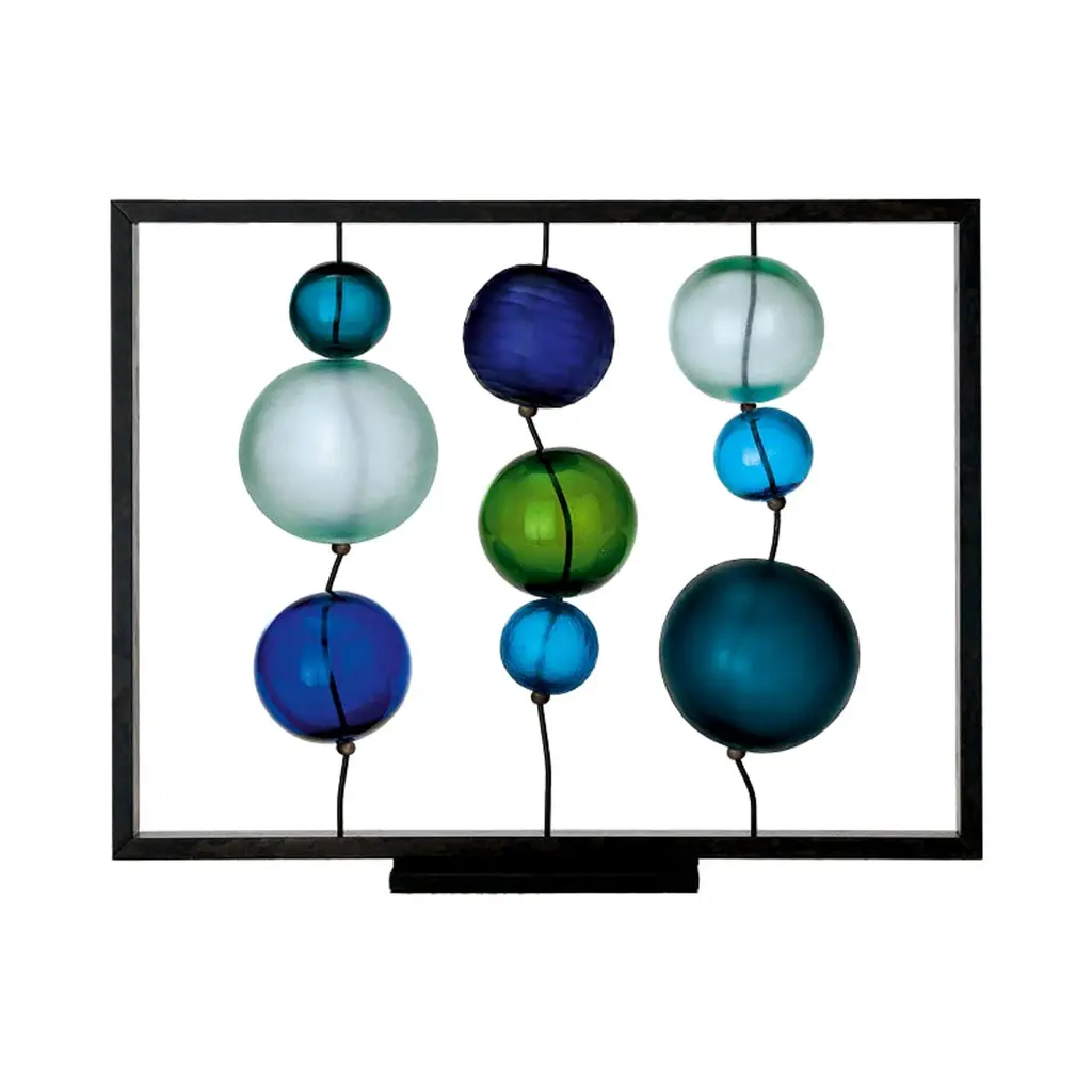 An all time favorite color combination of aqua & lime. Fits well in many settings from contemporary to traditional or beach house. Drama is added in a big way with threads & spots as well as a bit of luster!As shown, this assortment will cover approx. 8 to 10 sq. feet of wall space. • In your Set of 15 - Urban Wall Spheres , you get1 - 3" Lime Luster 2 - 3" lime Cobweb2 - 3" Aqua cobweb1- 3" Aqua iced2 - 3" aqua twirled1 - 3" Aqua Dot & Dash1 - 4.5" Lime Crackle2 - 4.5" Lime w/ Aqua Threads 2- 4.5" Aqua Threads 1 - 6" Lime 1- 6" Aqua Luster Hardware and installation instructions included.All of our blown glass products are made in Mexico from 100% RECYCLED GLASS. They vary somewhat in size, shape and color and may include tiny air bubbles which are the normal and charming characteristics of artisan workmanship. Every handmade piece is unique!