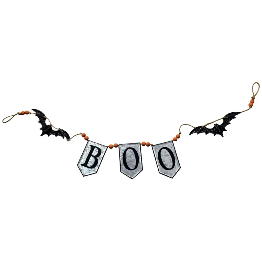 Whisen Iron Boo Banner W/bats, Halloween Holiday Decoration - Black & Grey