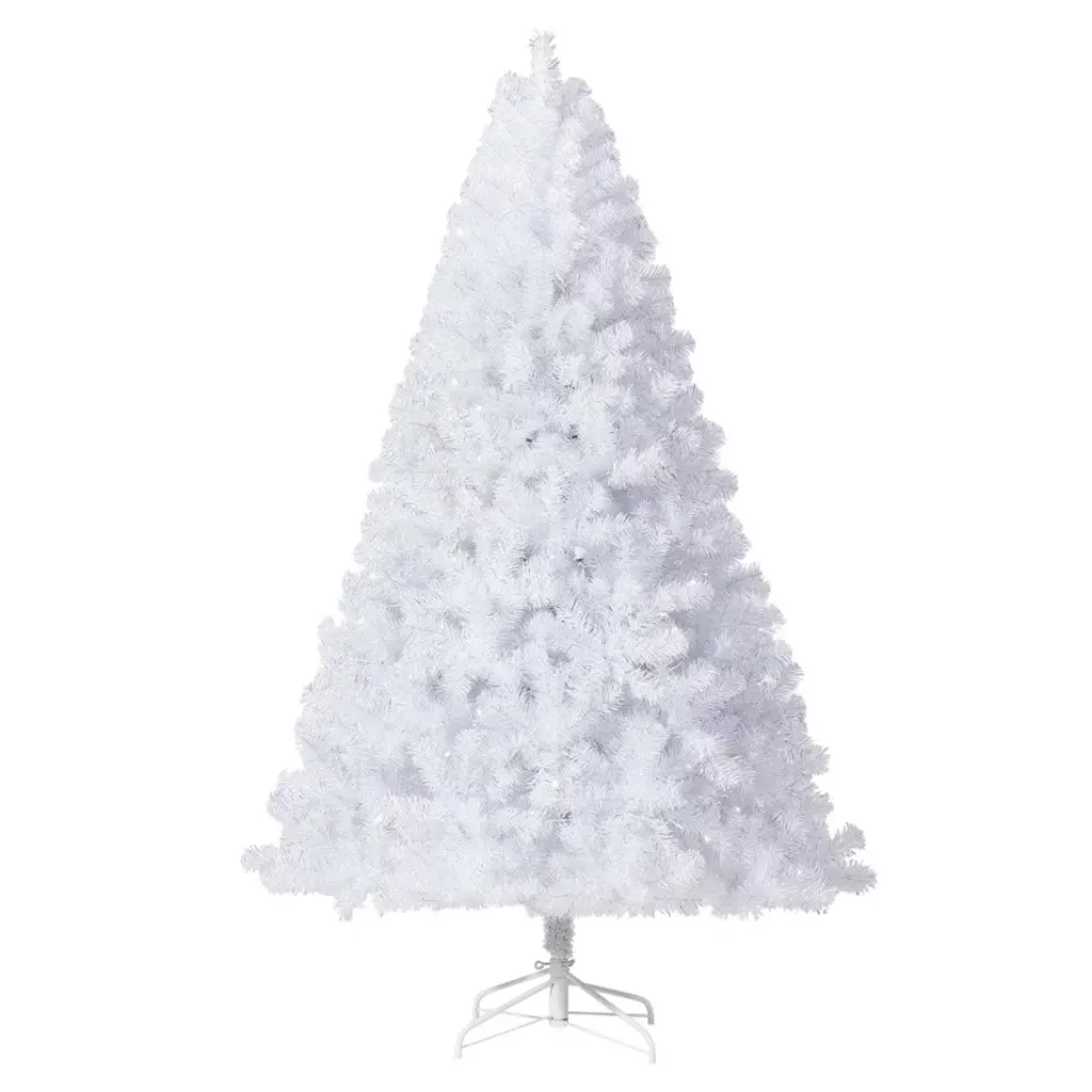 White Christmas Tree,7.5ft Prelit Artificial Christmas Tree With Led Warm White Lights & Metal Stand,fake Xmas Pine Holiday Decoration For Home,office