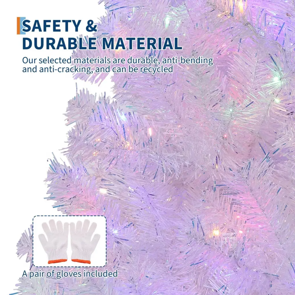 White Christmas Tree 7.5ft Prelit, Artificial Snowy Xmas Tree with Warm White LED Lights & Metal Stand, Holiday Decor for Home, Office, Party DecorationProduct DescriptionTransform your holiday space with the enchanting beauty of our 7.5ft Prelit White Artificial Christmas Tree. Expertly crafted to mimic freshly fallen snow, this stunning tree brings magical winter charm to any setting. With its pre-strung warm white LED lights and sturdy metal stand, this tree offers both elegance and convenience for your holiday decorating needs.The tree's laser white color and realistic snowy appearance create a captivating centerpiece that works beautifully in modern and traditional decor schemes alike. Whether you're hosting a festive party, decorating your office, or simply bringing holiday cheer to your living room, this artificial tree provides a perfect solution with its easy setup and timeless appeal.Key Features1. Snowy White Elegance Features a laser white finish that mimics the look of freshly snow-covered branches Crafted with premium materials for a lifelike snowy appearance that lasts throughout the season Perfect for creating a winter wonderland theme in any space 2. Pre-Strung Warm White LED Lights Comes with hundreds of energy-efficient warm white LED lights pre-installed Provides a cozy, inviting glow that enhances the tree's snowy appearance Eliminates the hassle of untangling and adding lights separately 3. Durable & Safe Construction Made from flame-retardant PVC materials for enhanced safety Features a strong X-shaped metal base that provides exceptional stability Built to last through multiple holiday seasons with proper care 4. Easy Assembly & Storage Simple three-step setup: connect the sturdy base, stack the sections, and fluff the branches Hinged branches fall naturally into place for quick arrangement Detaches into compact sections for convenient storage in included storage bags 5. Versatile Decorative Use Perfect for homes, offices, party venues, and commercial spaces Creates an elegant backdrop for weddings and special events Complements various holiday decor styles from traditional to contemporary Specifications Brand: TruAIR Color: Laser White Material: Flame-Retardant PVC, Metal Stand Tree Height: 7.5 Feet Item Weight: 17.5.77.5 Pounds Light Type: Warm White LED (Prelit) Item Package Quantity: 1 Recommended Uses: Indoor Occasion: Christmas, Holidays, Special Events Special Features: Prelit LED Lights, Metal Stand, Flame-Retardant, Easy Assembly