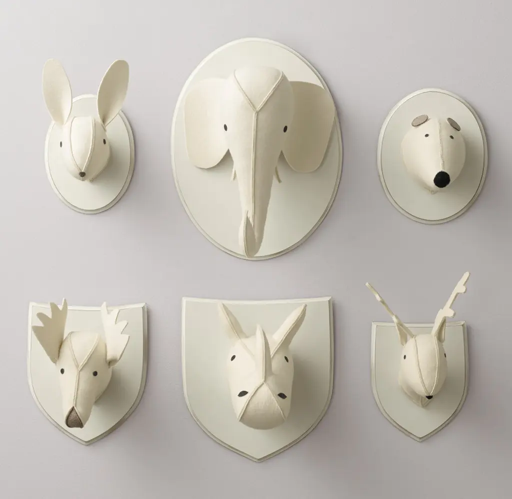 Soft wool felt puts a friendly twist on the iconic animal busts, with contrasting felt accents that give these lovable creatures their irresistible character.