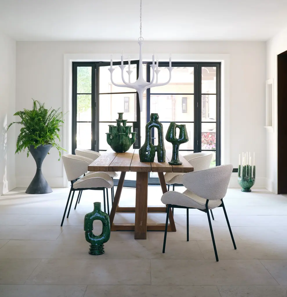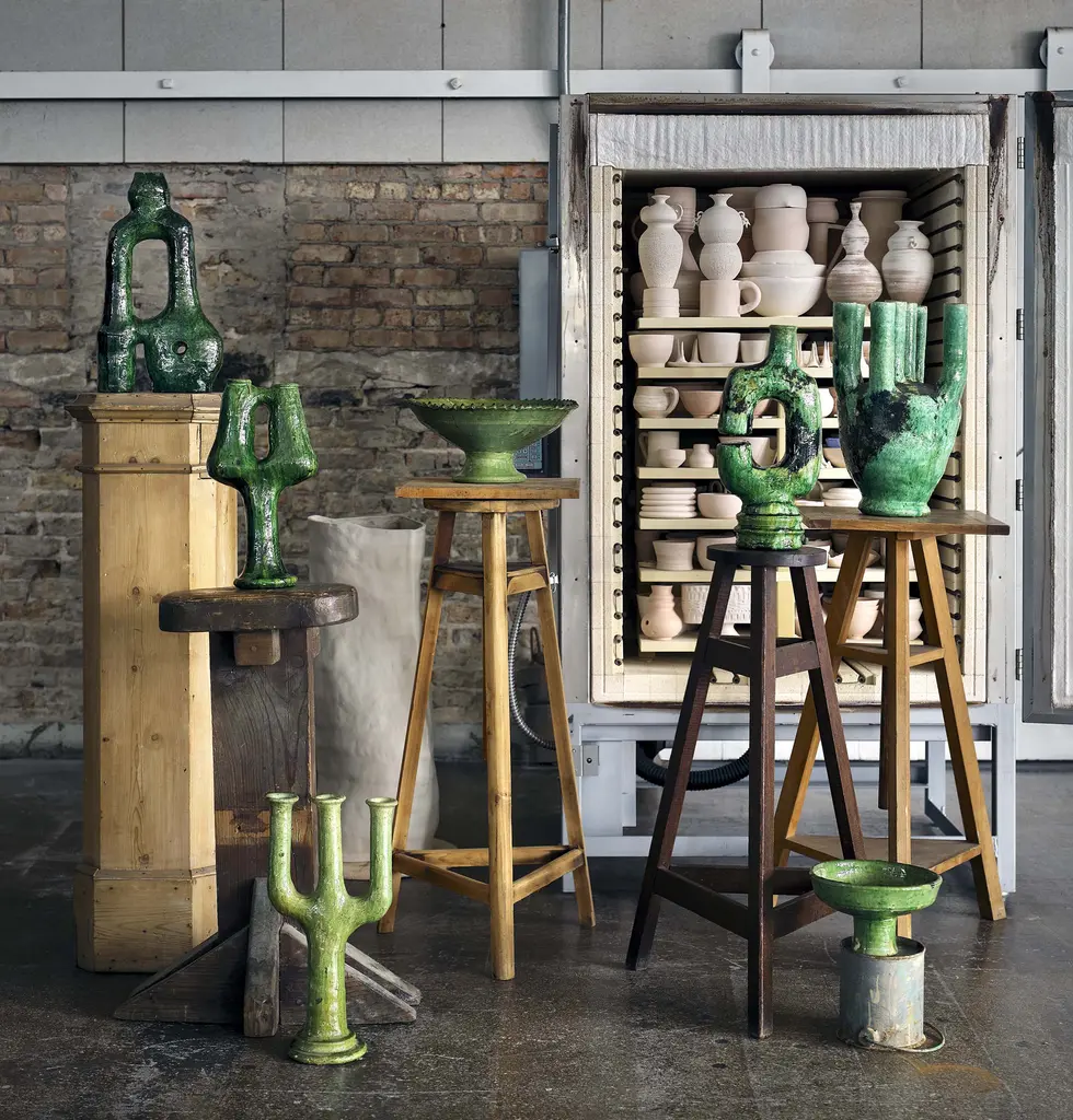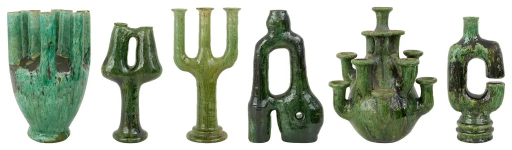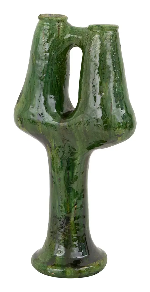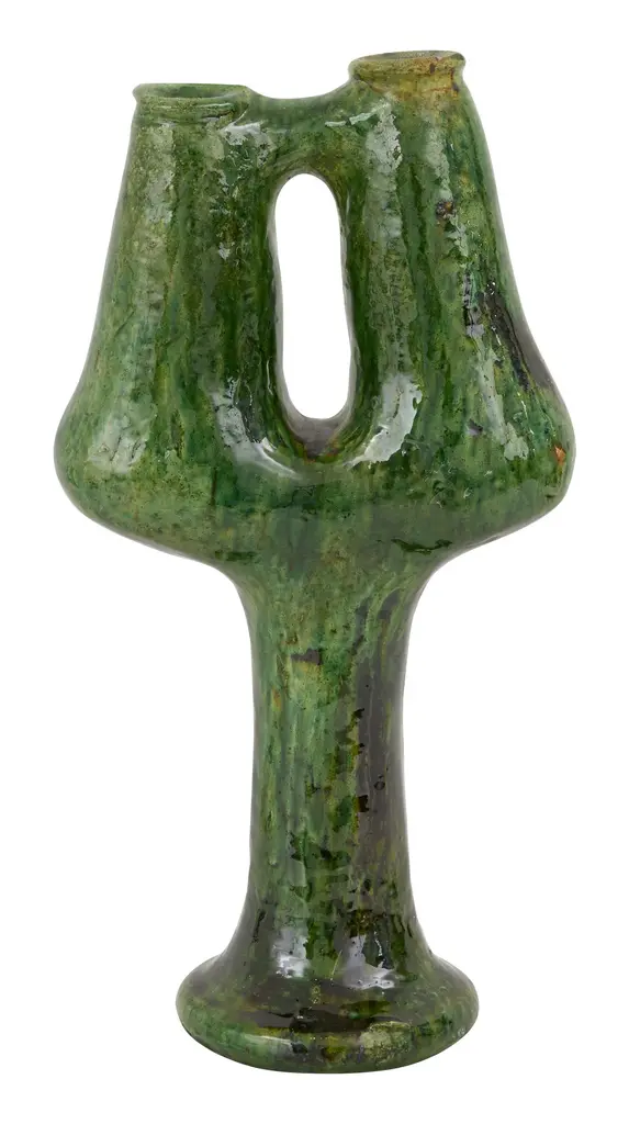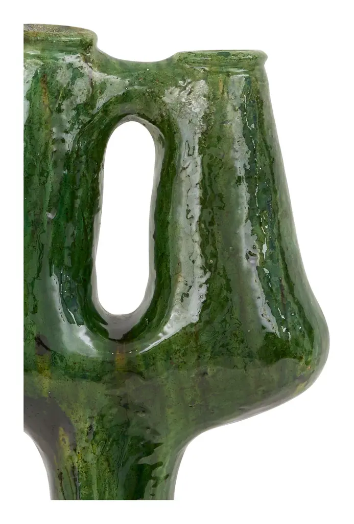 Journey to the western edge of the Sahara desert and you’ll find the village of Tamegroute — an historic oasis where Morocco’s iconic Tamegroute pottery has been produced for centuries. There, following these age-old, closely-guarded techniques, our gorgeous Zohra Pottery is handcrafted by skilled local artisans in a small, family-owned workshop. The process starts with clay dug from the nearby Draa riverbed, which is molded into unique, abstract shapes and coated in a glaze made from a secret concoction that includes magnesium and copper oxide. Once glazed, each piece is fired in a blazing hot wood-burning oven (we’re talking over a thousand degrees!) for more than twenty-four hours. Something about the alchemy of that specific local clay, dipped in that particular glaze and slowly fired at that extreme temperature results in our Zohra Pottery’s distinctive shade (or, more accurately, shades) of green. With their vibrant hues, earthy texture and sculptural, perfectly imperfect silhouettes, they’re great for bringing a pop of color and global style to any room of the house, whether you go with just one or opt for a grouping of all six designs. True handmade objects, no two are exactly alike and variations in shape, size and glaze color should be expected. •stoneware •reactive green glaze •handmade in morocco following traditional techniques •each is unique; variations in shape, size, glaze color and handmade characteristics should be expected Dimensions •approximately 8.75"W x 5.25"D x 17"H Each of our Zohra Pottery Collection is completely unique and variations should be expected. Please make a note at checkout or send us an email if you would like to receive photos of available options. If we don’t hear from you, we will choose one for you from our selection.