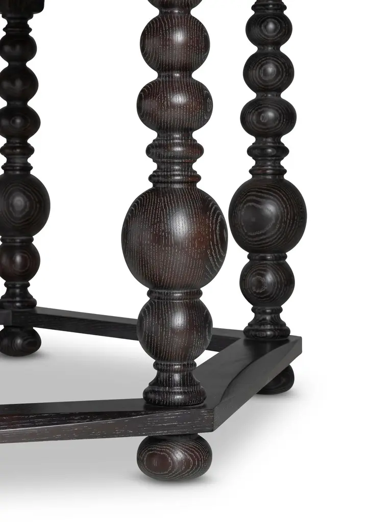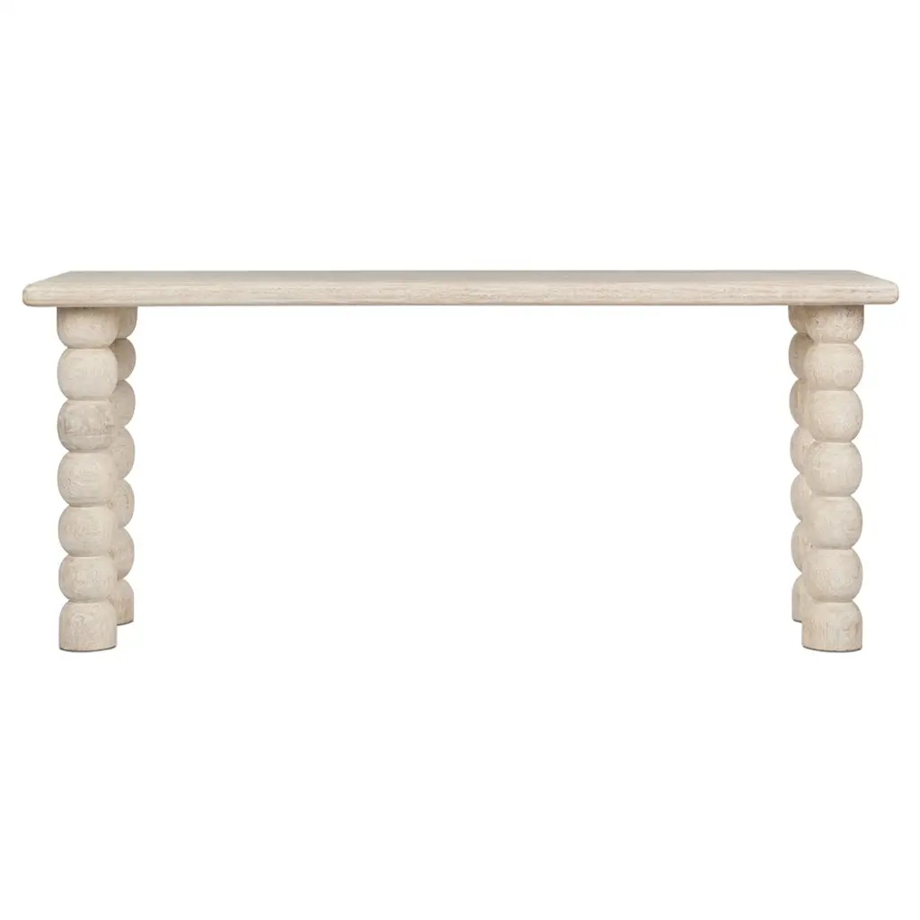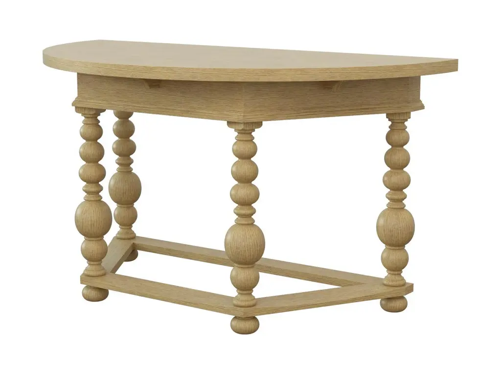 6310-49 CAMPANIL DEMILUNE TABLEWidth 54” Depth 27” Height 30” (Width 137 Depth 65 Height 76 cm)As Shown Finish: Roble BlancoFeatures: Oak Solids and Veneers