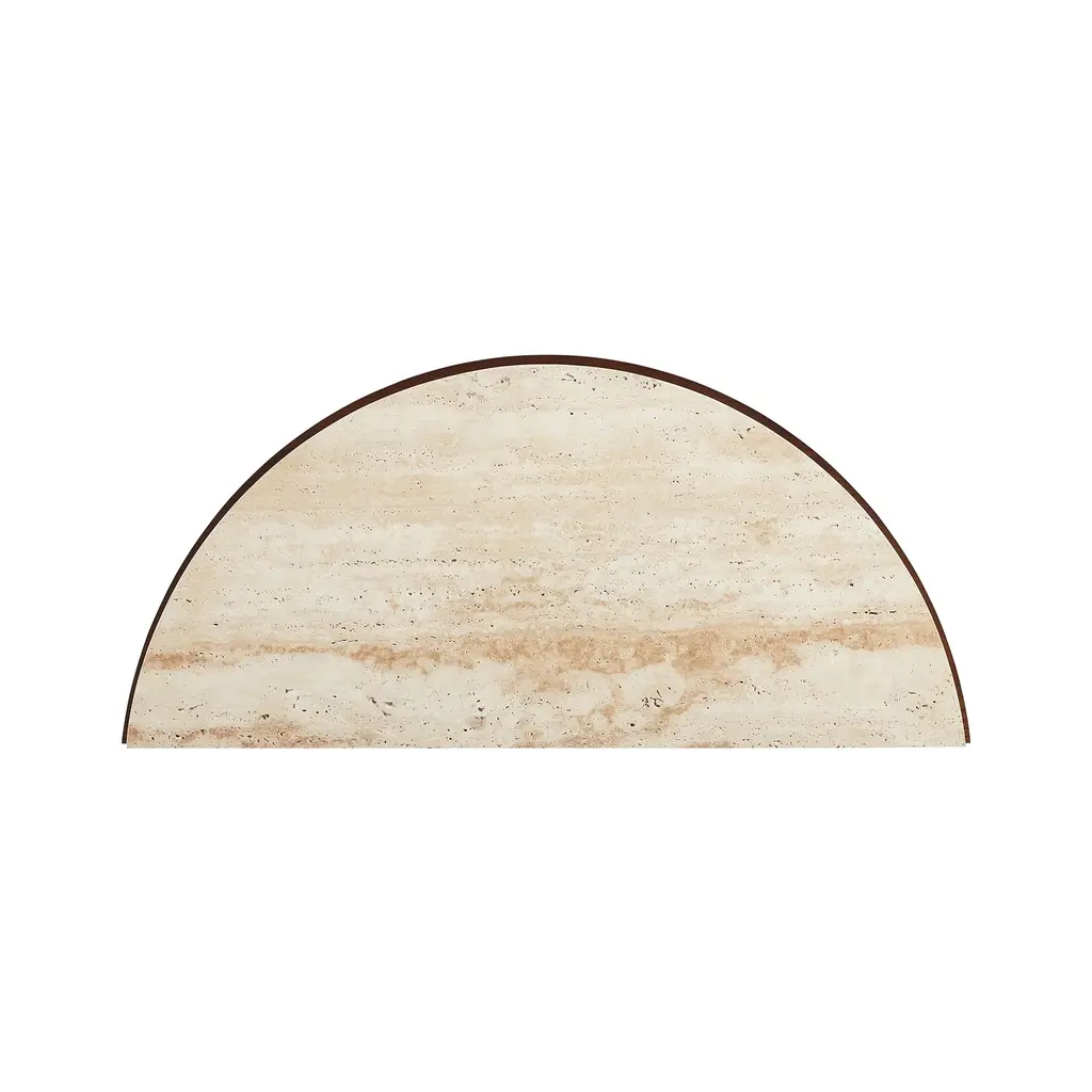 The epitome of transitional style, the Bridgeton Demilune has a contemporary shape combined with mid century modern elements that pair with the rich brown or crisp white wood construction. The front double doors are seamless with the panelling across the entire front of the piece, and hide ample storage. The Carob Brown model also includes a tan Travertine Stone top, adding additional texture. Ships In 10-12 Weeks Ships In 10-12 Weeks Half moon top Seamless front doors Sandstone or Carob Brown finish As Shown Finish: Sandstone, Carob Brown This image is for illustrative purposes only. The colors shown are accurate within the constraints of lighting, photography, and the color accuracy of your screen.
